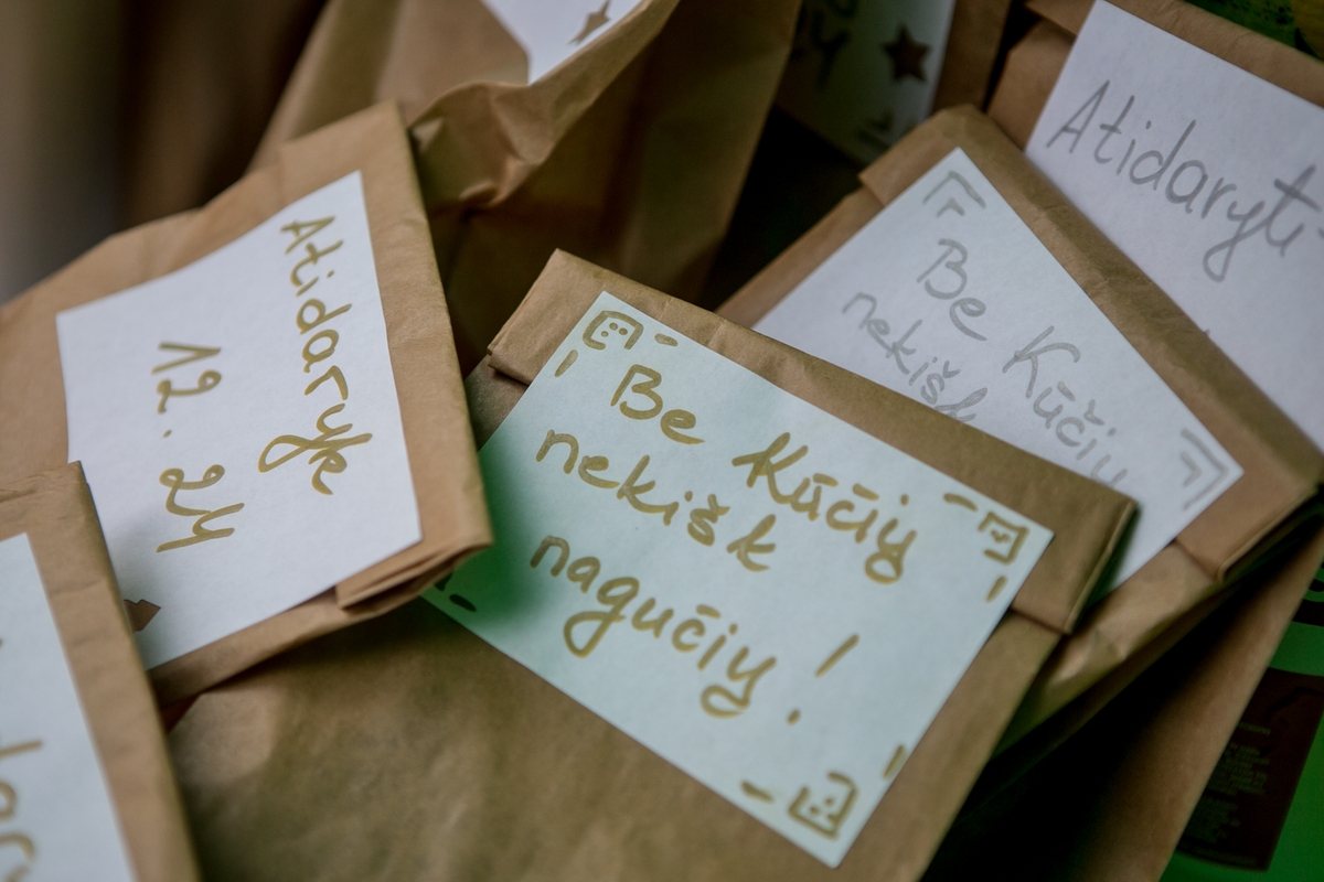 "Žaisliukai bus sudėti į popierinius maišelius ir taip bent šiek tiek primins magiškus vaikystės vokus "Be Kūčių – nekišk nagučių", – pasakojo viena iš "Pelėdų kavos" įkūrėjų.