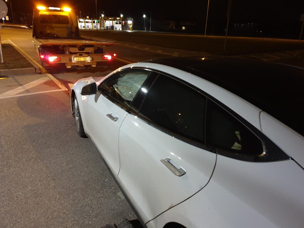 Dėl padarytų pažeidimų elektromobilis pats važiuoti nebegalėjo, tad buvo iškviestas techninės pagalbos transportas, nugabenęs elektromobilį į aikštelę. Tačiau čia prasidėjo ilgos paieškos, mat Lietuvoje nelabai kas gali sutvarkyti „Teslos“ elektronikos bėdas.