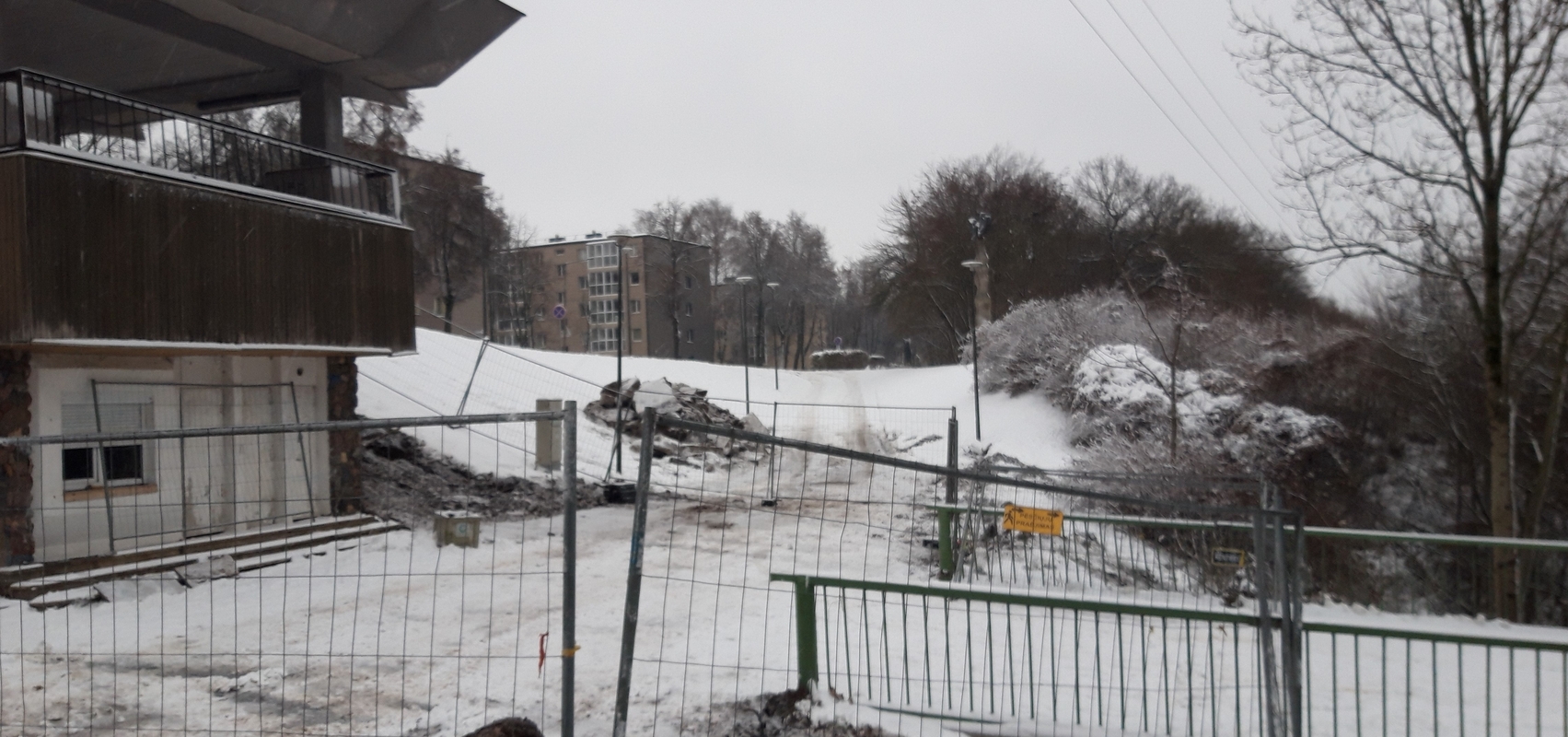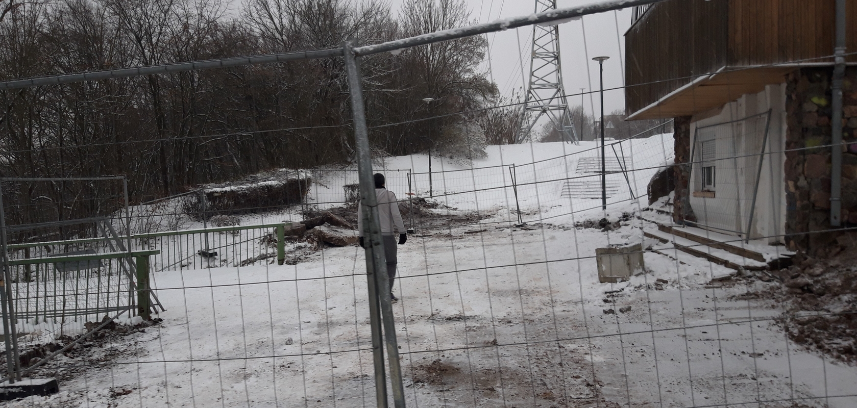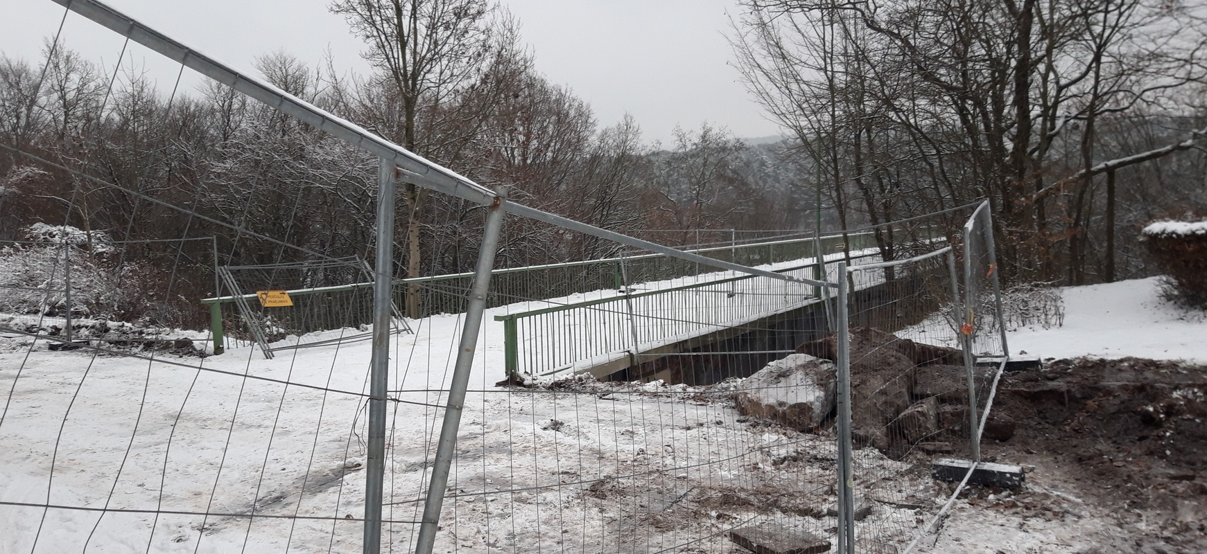 Šiandien apsilankiau prie tilto. Praėjimas link jo nuo Biržiškų gatvės užtvertas iš visų pusių. Jau pradėti ir darbai – išversta dalis laiptų, vedančių nuo Biržiškų gatvės link tilto.