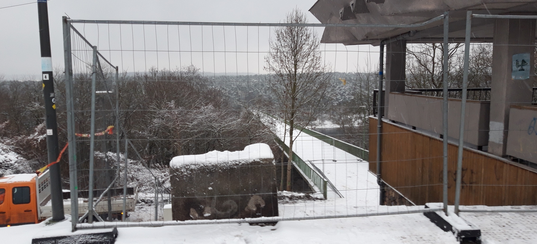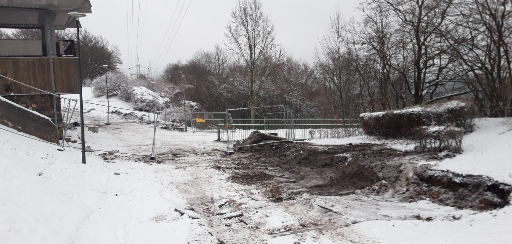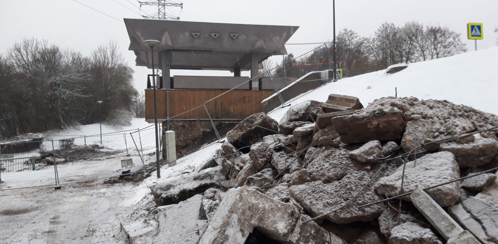 Šiandien apsilankiau prie tilto. Praėjimas link jo nuo Biržiškų gatvės užtvertas iš visų pusių. Jau pradėti ir darbai – išversta dalis laiptų, vedančių nuo Biržiškų gatvės link tilto.