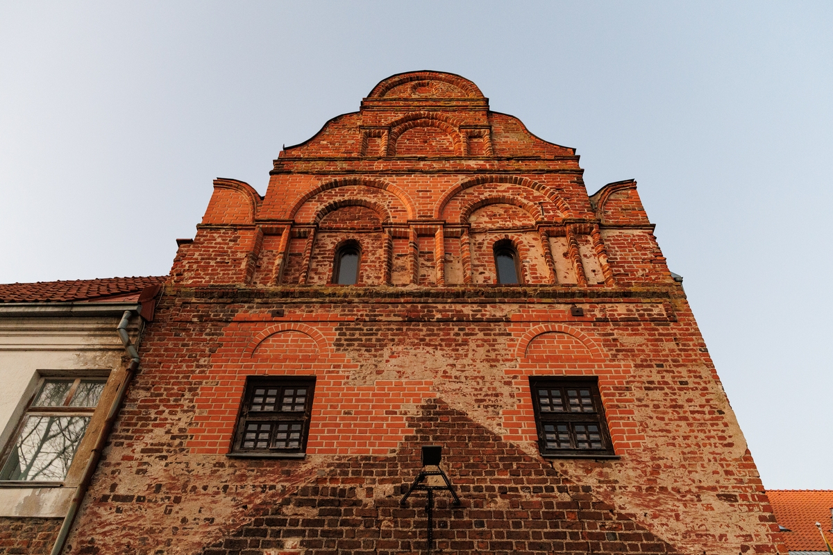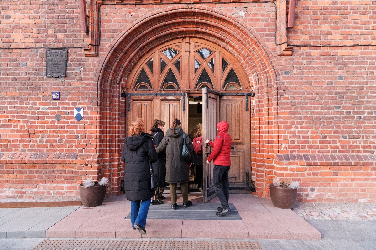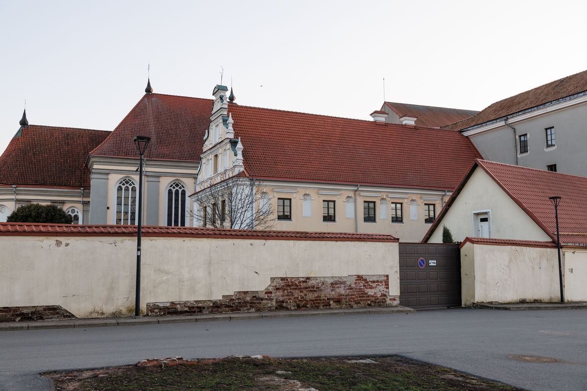 Nuo Kauno arkikatedros bazilikos ekskursijos dalyviai pasuko link Vilniaus universiteto Kauno fakulteto (VU KF) Muitinės gatvėje, iš čia – į Naugardo gatvės akligatvyje esantį uždarą universiteto kiemelį. Čia, toliau nuo atsitiktinių praeivių žvilgsnių, stūkso keletas istorinių pastatų. Gidė pasuko tiesiai prie išsiskiriančio būdingų gotikai raudonų plytų namo.