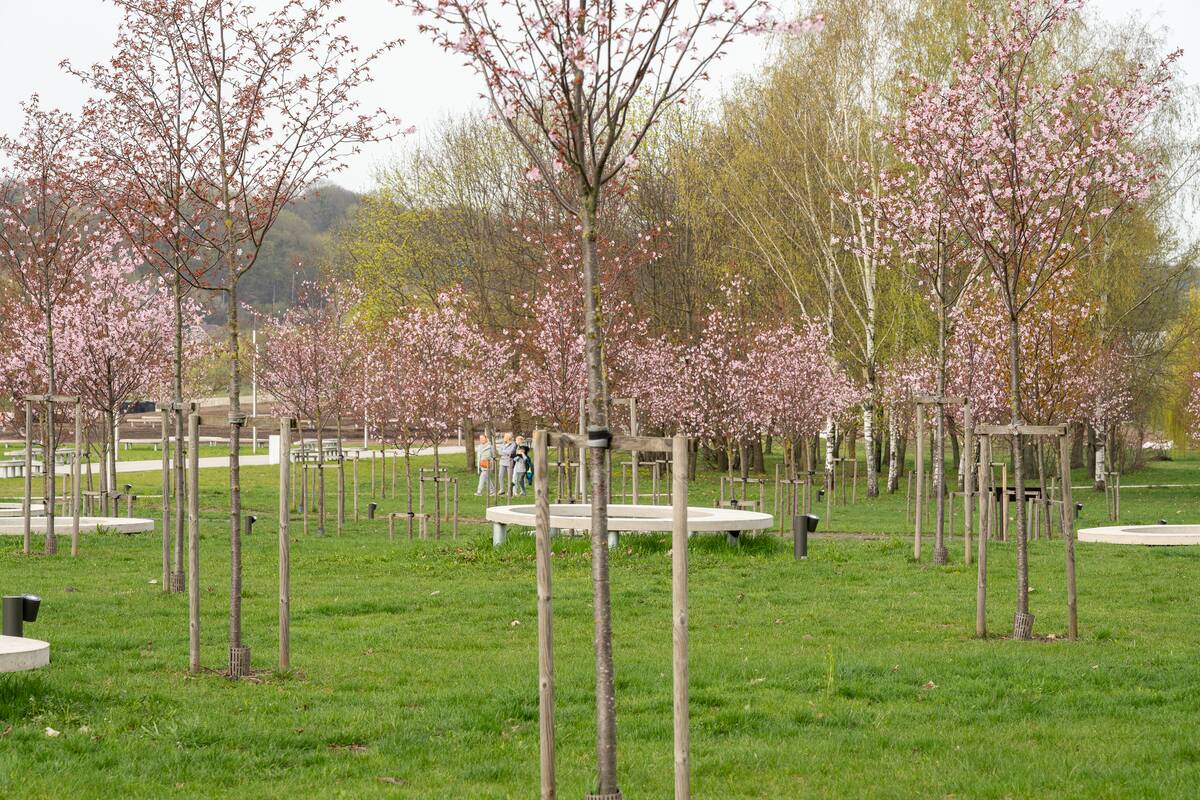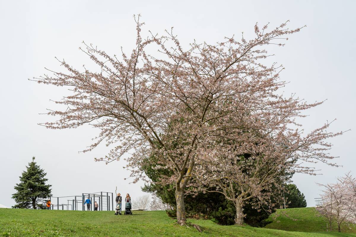 Šiame parkelyje – sakurų žiedų gausa, prasprogę jau kone visi medeliai. Tačiau ties Nemuno krantine augančios japoniškos vyšnios – jau gerokai vyresnės, čia dar tik pradeda skleistis žiedai. Matyt, ties upės vaga pasodintos vėlyvesnės sakuros, bet tikrai ilgai laukti nereikės ir šioje vietoje pradės snigti baltais žiedais.