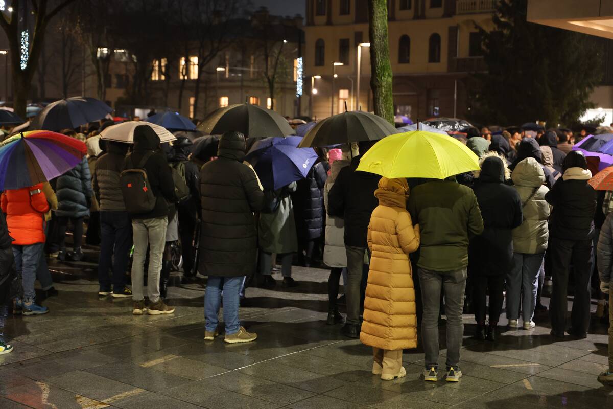 Vakaras pasitaikė lietingas, tačiau Kaune į Studentų skverą susirinko minia.