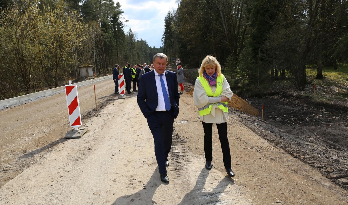 Susisiekimo ministras taip pat apžiūrėjo kaip įvairiose Kauno rajono vietose vyksta kelių rekonstrukcijos darbai.