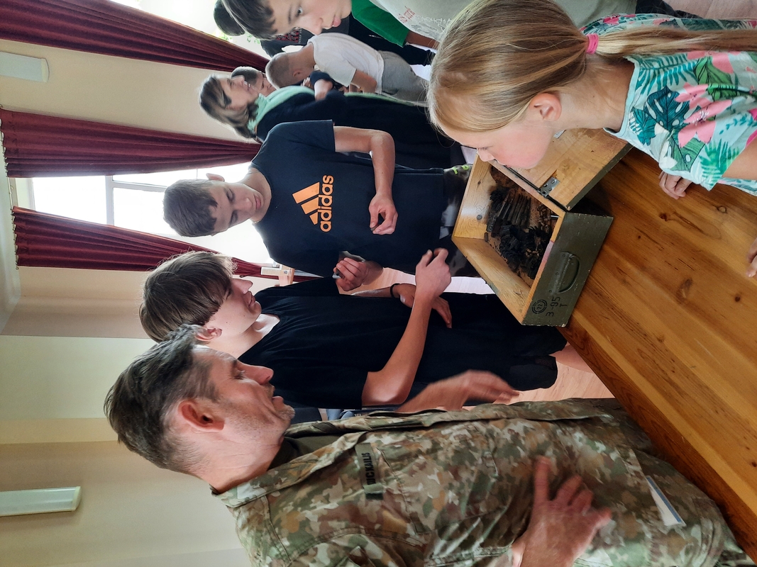 „Pabandę kariškų, šauliškų dalykų, gal ir jaunaisiais šauliais norėsite tapti“, – klausiu stovyklautojų.