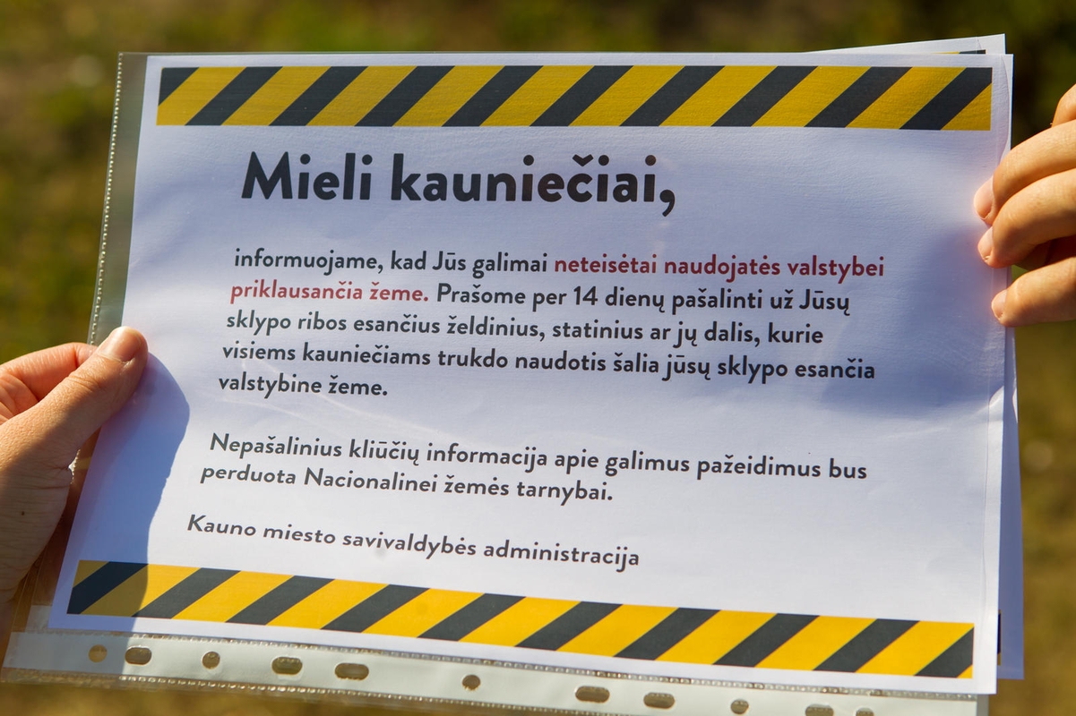 "Prieš įstatymus visi turi būti lygūs. Deja, bet vis dar pasitaiko atvejų, kai žmonės spjauna į įstatymus ir jaučiasi lygesni už kitus, – teigė Viešosios tvarkos skyriaus vedėjas Vytautas Jurkevičius. – Žemuosiuose Šančiuose esančioje Nemuno pakrantėje užfiksavome ne vieną ir ne dvi vietas, kur valstybine žeme žmonės naudojasi lyg savo. Ji užgrobiama įvairiais būdais – ir tujomis, ir betono blokais, ir padangomis. Bet nepuolame kauniečių bausti. Įspėjome juos, kad susitvarkytų. Jei tai nebus padaryta, informaciją perduosime Nacionalinei žemės tarnybai."