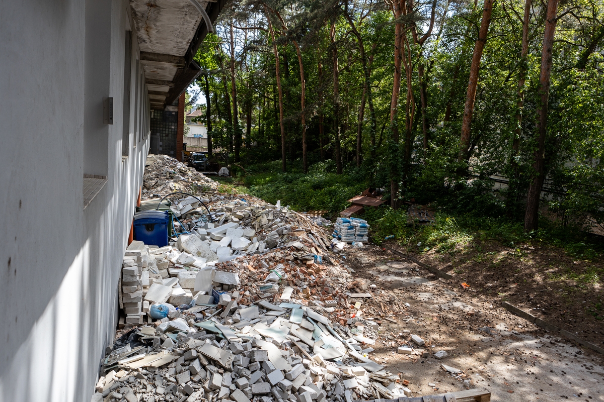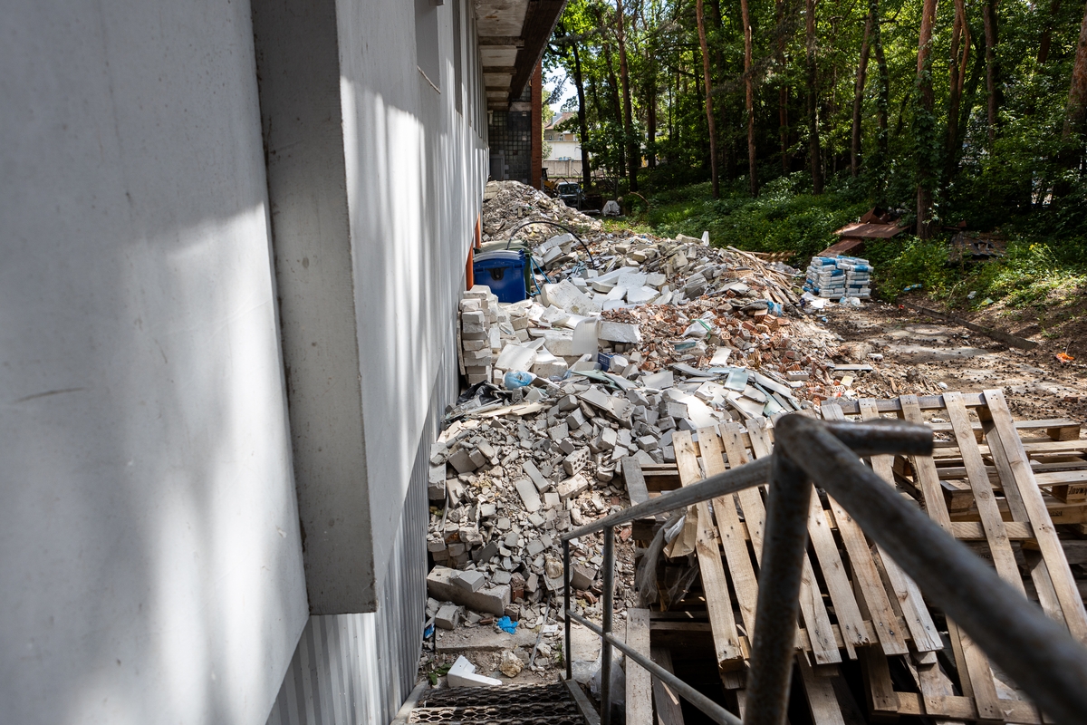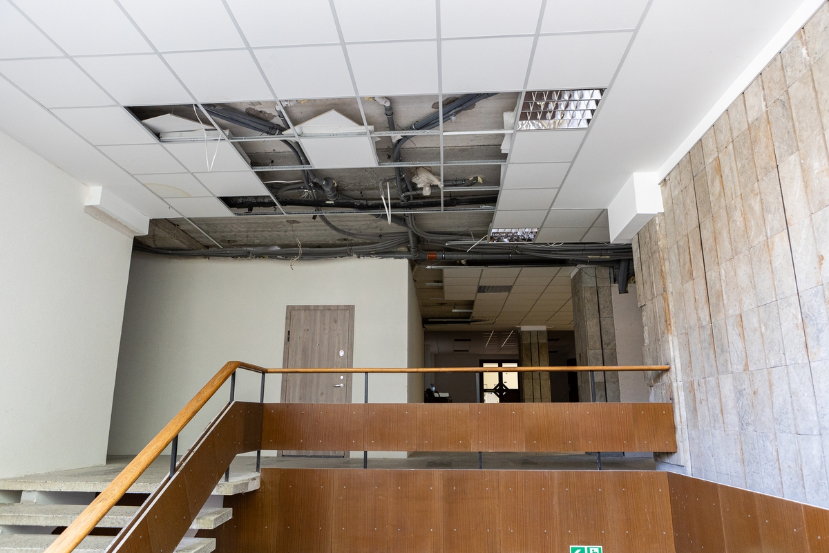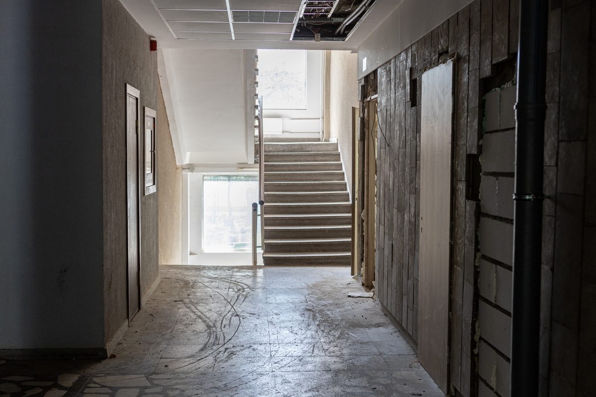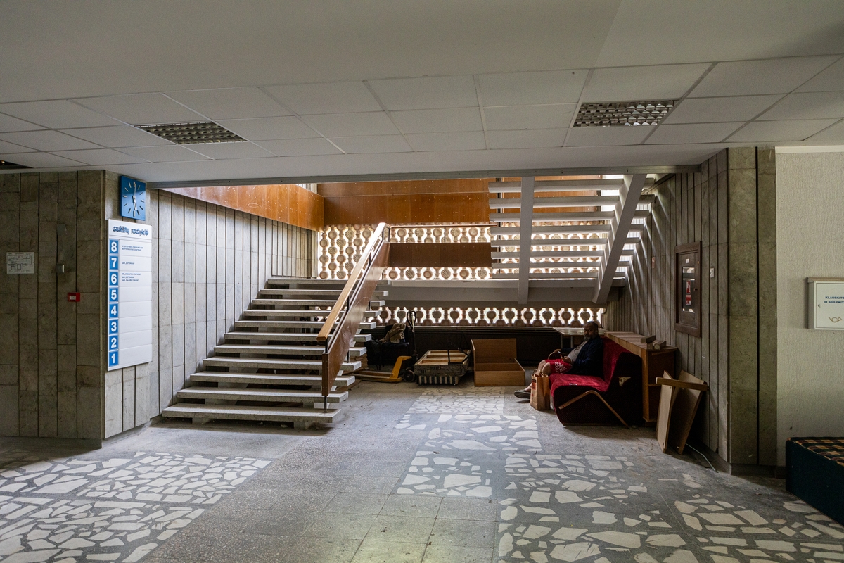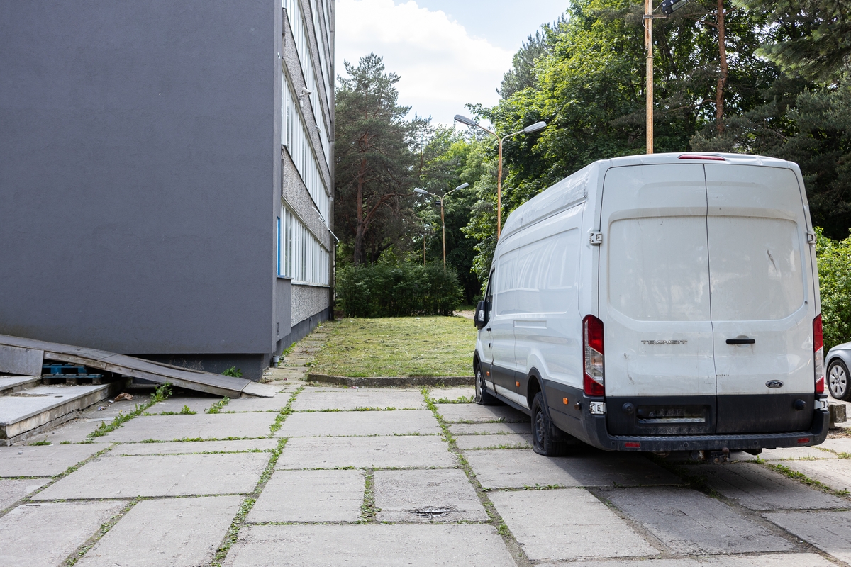 Pastato paradinė dalis atrodo iš dalies atnaujinta, bet apie vidaus patalpas ir aplinką to nepasakysi.