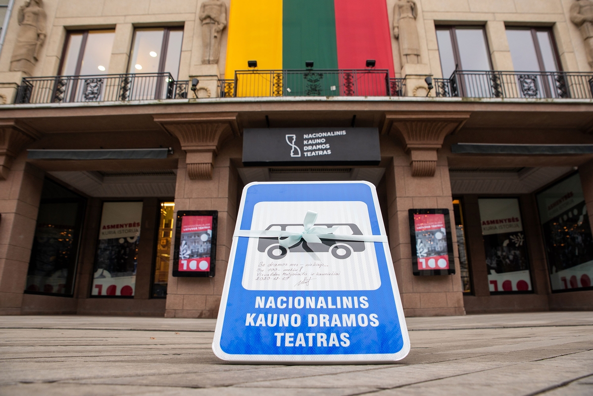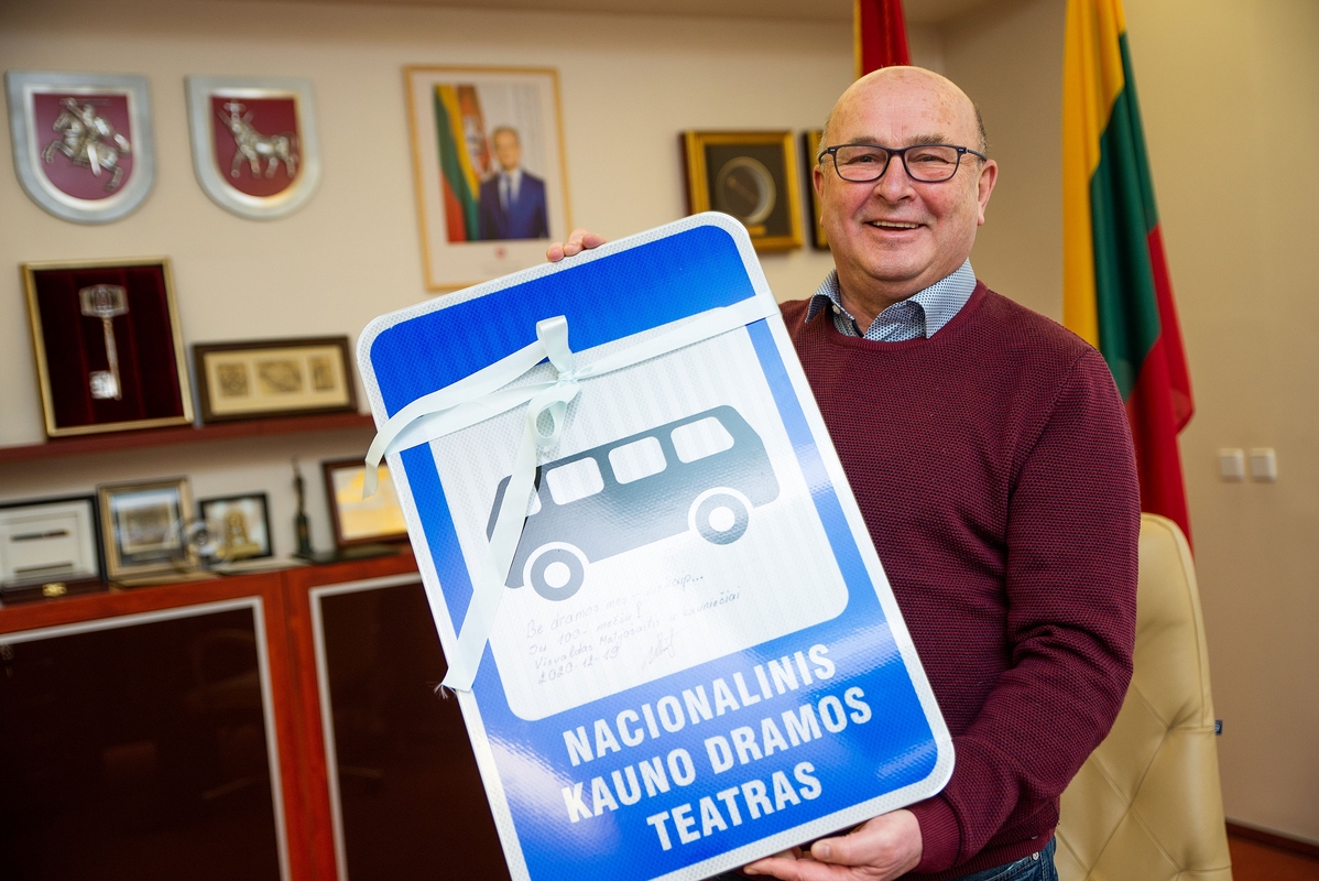 Tai ne tik simboliška, bet ir praktiška dovana, kuri pasitarnaus kaip nuoroda. Nuo šios stotelės iki teatro – visai čia pat. Džiaugsimės, jei tai paskatins dar daugiau žiūrovų keliauti į teatrų sales, kai tik bus atpalaiduoti karantino ribojimai. Geriau tegul meistriškai suvaidinta drama užpildo teatro sceną, nes kasdienybėje dramatiškų įvykių dabar ir taip netrūksta“, – sakė Kauno meras Visvaldas Matijošaitis.
