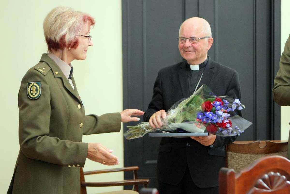 Kauno arkivyskupijos kieme nekantriai trypčiojęs būrys Šaulių sąjungos vadų ir narių, šiandien laikrodžiui artėjant prie 11 val., pakilo į antrojo aukšto salę. Čia sunėręs rankas jų laukė arkivyskupas emeritas S.Tamkevičius SJ.