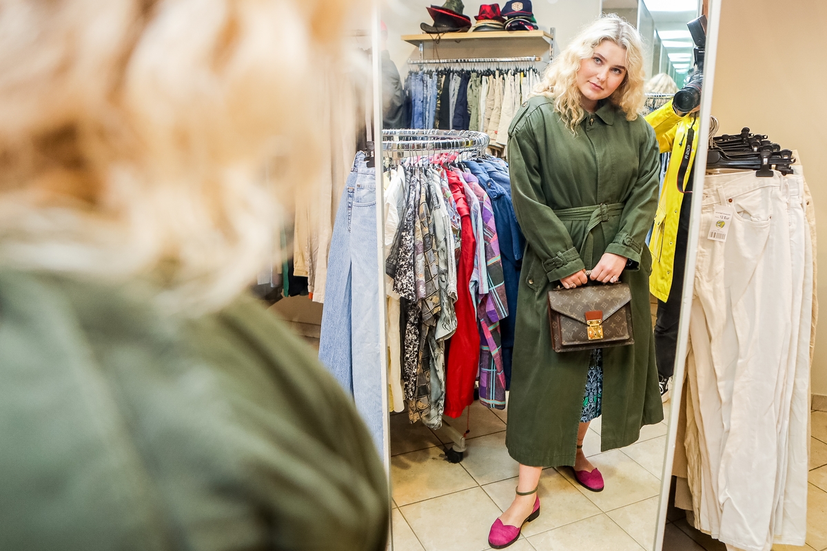 Vieną akimirką Augustės Barboros rankose buvo gėlėtas švarkas su stačiais petukais, kitą – samanų spalvos paltas ir juoda skrybėlė. Tiesa, iš vintažinės krautuvėlės šviesiaplaukė garbanė išėjo tuščiomis. Prieš dieną vienoje dėvėtų drabužių parduotuvėje miesto centre ji įsigijo suknelę, siuvinėtą džemperį ir sijoną.