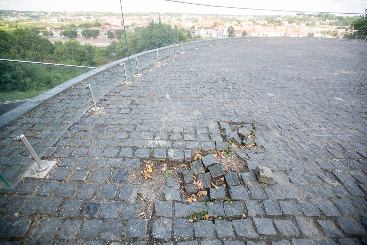Taip pat matome, kad dalyje viršutinės aikštelės nekokybiškai sudėta trinkelių danga.