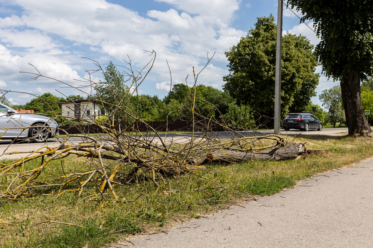 Netoli duobių gausos – dar vienas neveiklumo, gyventojų teigimu, įrodymas. Nulūžo pakelėje augęs, bet ilgus metus džiūvęs medis.