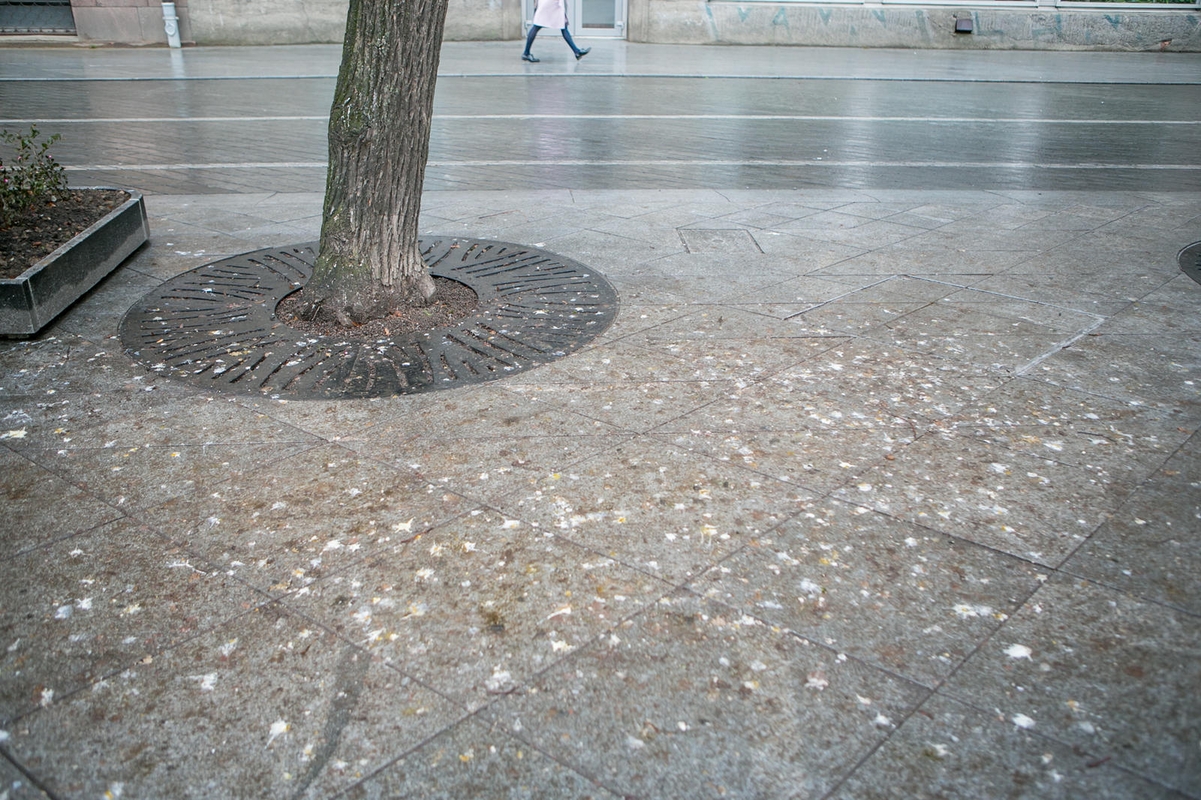 Ypač nuo varnų kenčia restauruotose Laisvės alėjos atkarpose pastatyti nauji modernūs suolai bei šviesi gatvės danga.