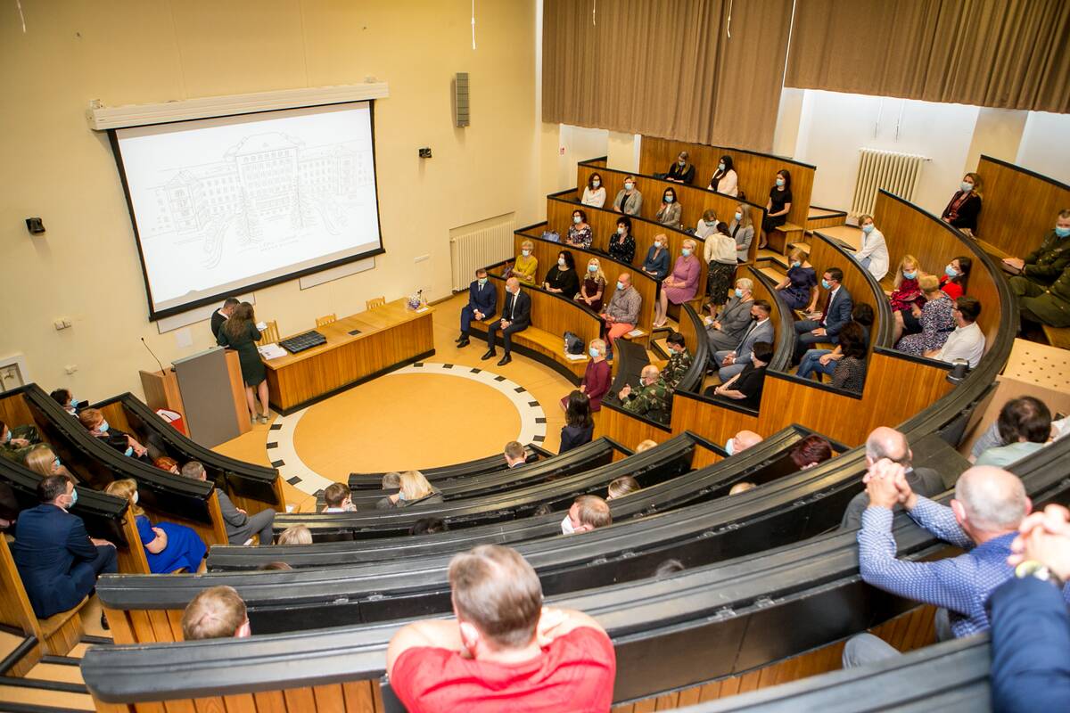 „Viena, kai apie pandemijas žinai iš istorijos ar skaitai apie jų pavojus vadovėliuose. Tačiau visai kas kita, kai pandemija ateina į mūsų pačių gyvenimą. Visi pasaulio medikai šių metų pradžioje susigrūmė su pastarojo meto didžiausiu sveikatos sistemos iššūkiu. Didžioji dalis dar vis negali grįžti į įprastą darbą. Tikriausiai nesuklysiu sakydamas, kad šiandien visi jaučiamės šiek tiek kitokie – labiau pavargę, su daugiau klausimų nei atsakymų, iš naujo pažinę savo kolegų veidus, iš naujo susipažinę ir su savimi. Visu šiuo sudėtingu laikotarpiu mane žavėjo Kauno klinikų medikų ir kolegų didžiulė vidinė stiprybė. Jie nepasidavė, kai situacija keisdavosi kelis kartus per dieną. Jie neskaičiavo darbo valandų ir tai matosi jų akyse. Labai džiaugiamės, kad per šį praėjusį laikotarpį tokioje didelėje ligoninėje kaip Kauno klinikos neužsikrėtė nei vienas personalo narys, nei vienas pacientas. Dėkoju už jūsų meilę žmonėms“, – kalbėjo R. Jurkevičius.