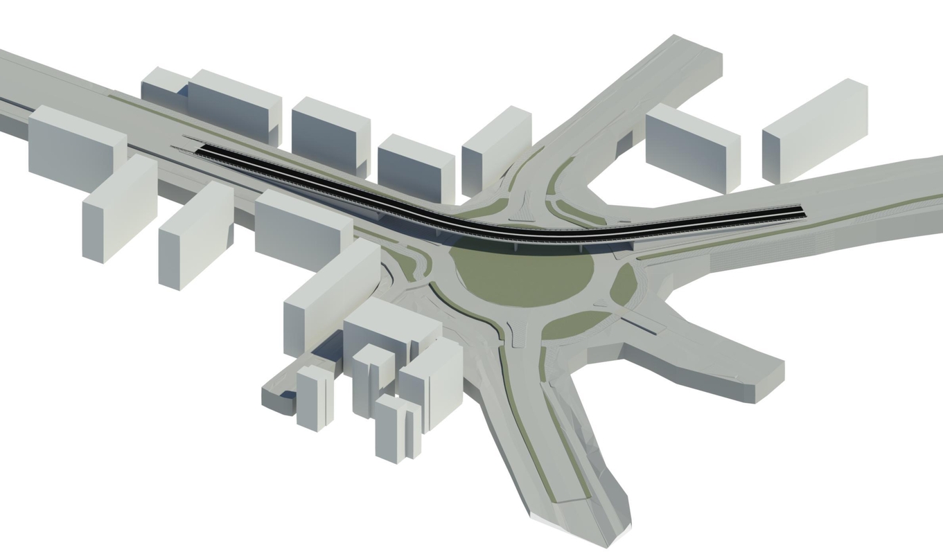 Šias problemas galėtų išspręsti dviejų lygių žiedinė sankryža.