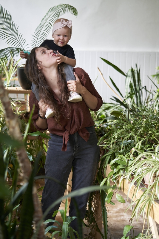 „Tai pamačiusi, nupirkau Elžbietai įrankius pagal ūgį. Aš šluoju – ir ji su savo mažyte šluotele. Aš skudurėliu atsargiai valau augalų lapus – mano elgesį stropiai kopijuoja ir ji. Stebiuosi, kaip švelniai ir atsargiai ji moka elgtis su augalais“, – žavisi mažąja mama.