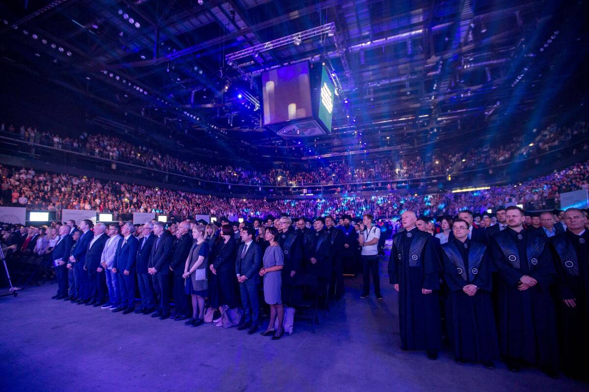 Linksmai nusiteikusi universiteto bendruomenė, absolventai bei jų artimieji plūdo į pilną „Žalgirio“ areną. Šiandien KTU išleido devynių fakultetų absolventus. 94-osios laidos bakalauro, magistro ir doktorantūros studijų absolventai atsisveikino su savo Alma Mater.