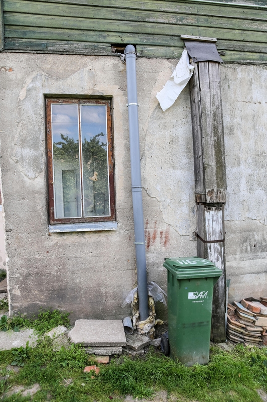 Jis sakė, kad pats ir dar vienas kitas gyventojas naudojasi tik lauko tualetu. "Dauguma kitų gyventojų butuose jau seniausiai įsirengę kanalizaciją", – mostelėja ranka vyras į kelis atvirai prie išorinės namo sienos pritvirtintus ir į žemę įkastus kanalizacijos vamzdžius.