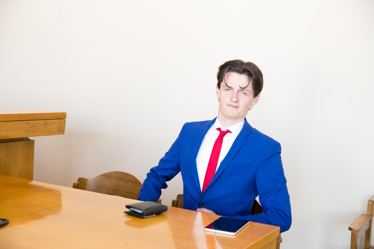 Atėjęs į teismo posėdžių salę, prie kurios durų buvo jo pavardė, įsitaisė ne kaltinamajam, o advokatui skirtoje vietoje. Tačiau bylą nagrinėjančios teisėjos Živilės Bliūdžiuvienės buvo subtiliai paprašytas pereiti į savo vietą.