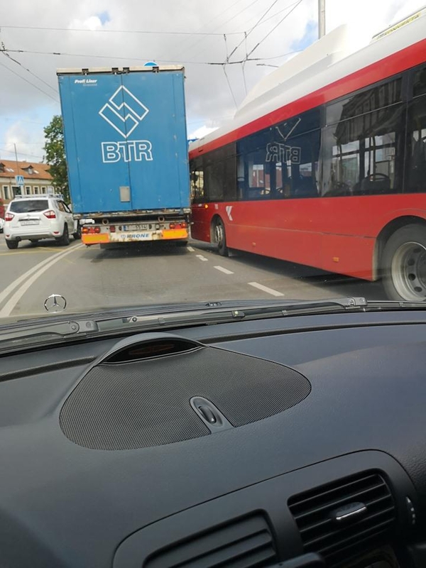 Pareigūnų duomenimis, šioje vietoje susidūrė Kauno viešajam transportui priklausantis 47-u numeriu pažymėtas autobusas ir vilkikas. Liudininkų užfiksuotose nuotraukose matoma, kad autobusas apgadintas – suknežintas kairysis kampas ties vairuotojo vieta.