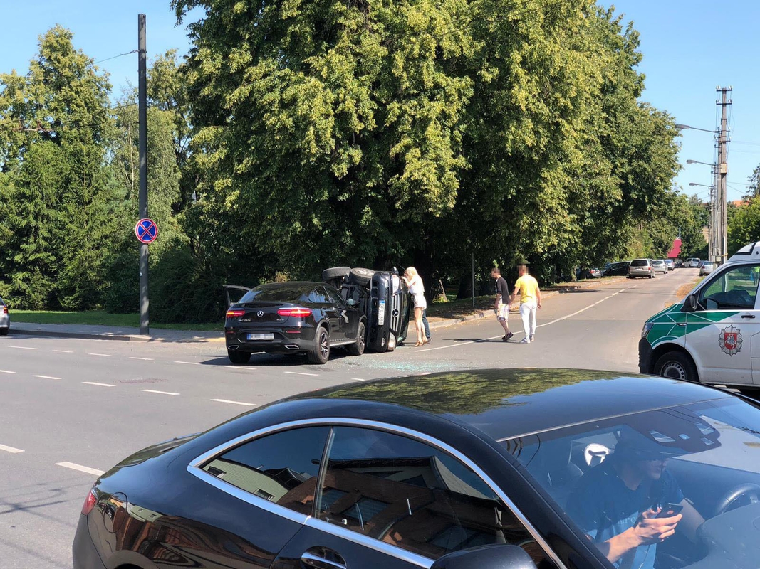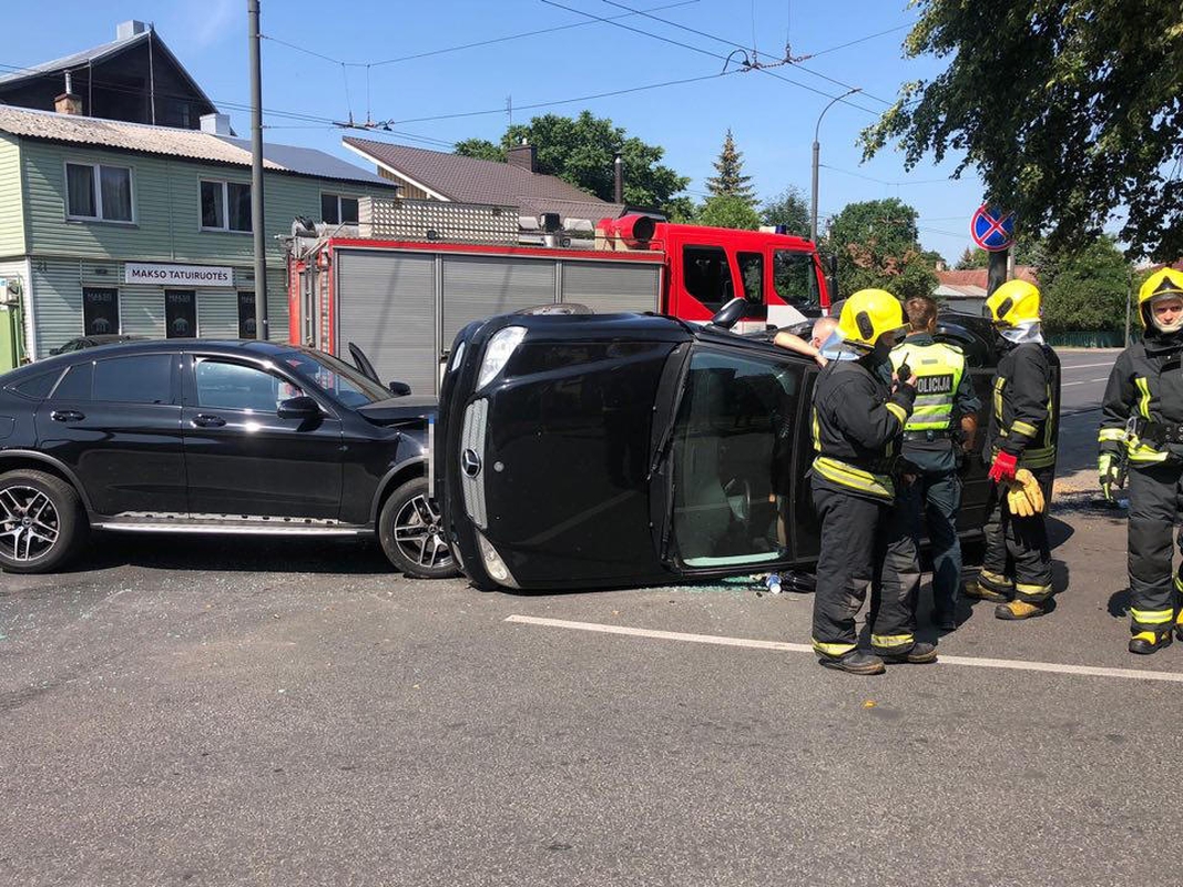 Kelio nepasidalijo du automobiliai. Abu jie – „Mercedes-Benz“ markės. Vieną jų vairavo moteris, kitą vyras. Po nemenko smūgio vienas jų apvirto ant šono. Dėl šios priežasties į avarijos vietą buvo iškviesti ugniagesiai.
