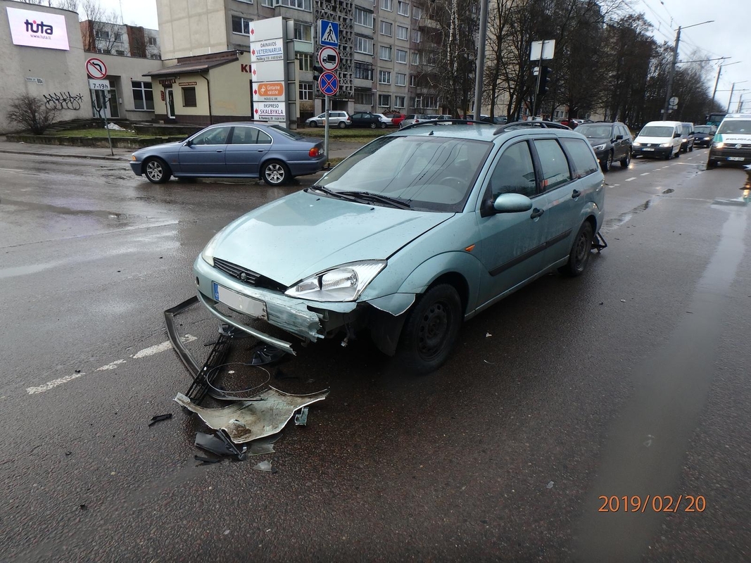 Kauno pareigūnai atlieka tyrimą, kuomet vasario 20 d. apie 10.30 val. Kaune, Taikos pr. ir Pašilės g. sankryžoje, susidūrė dvi transporto priemonės: „Ford Focus“ ir „VW Polo“.
