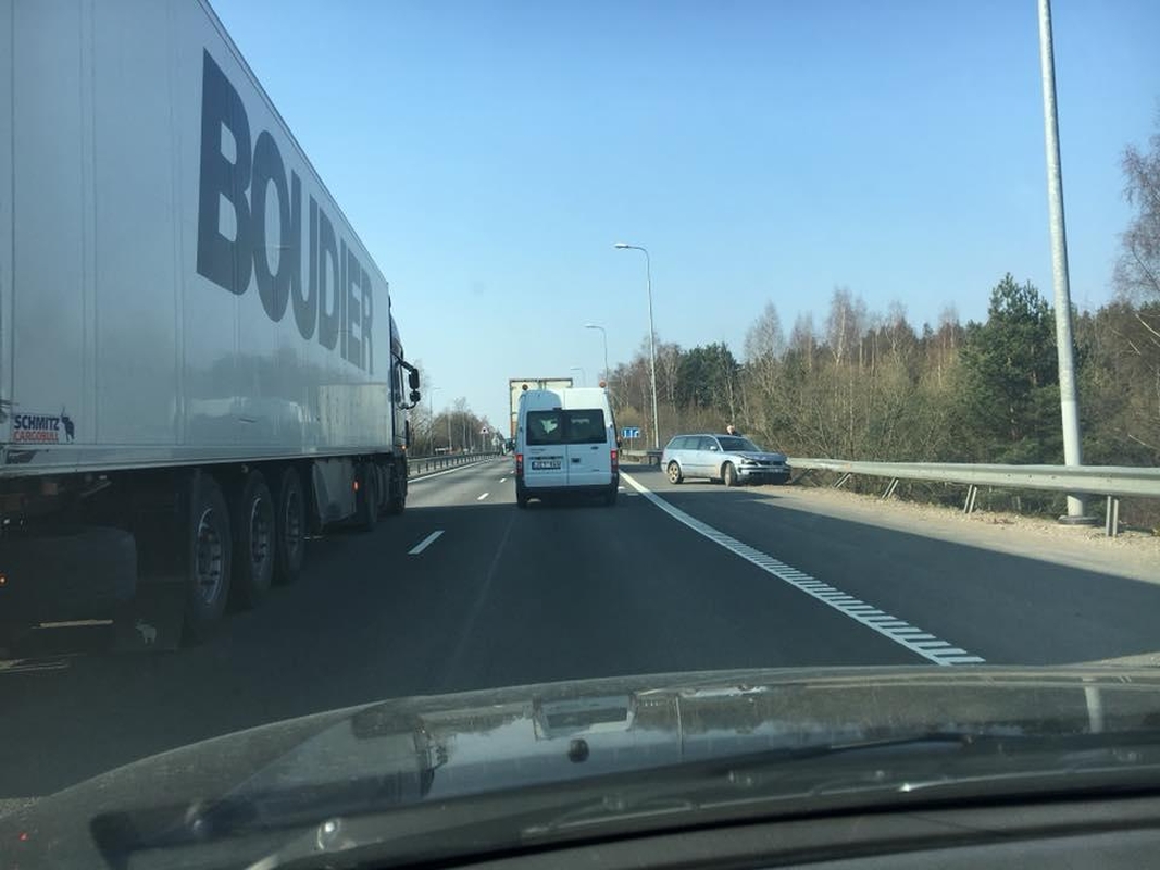 Vairuotojai praneša, kad dėl eismo įvykio šioje kelio atkarpoje formuojasi eismo spūstys.
