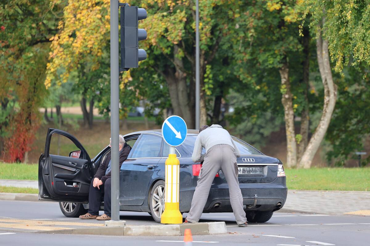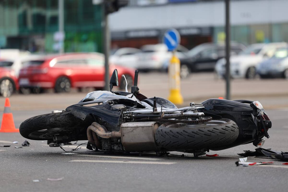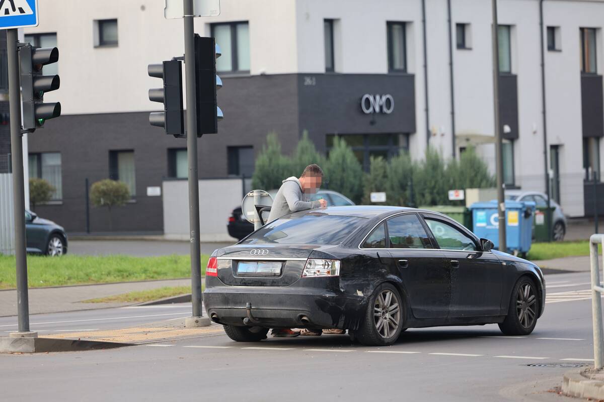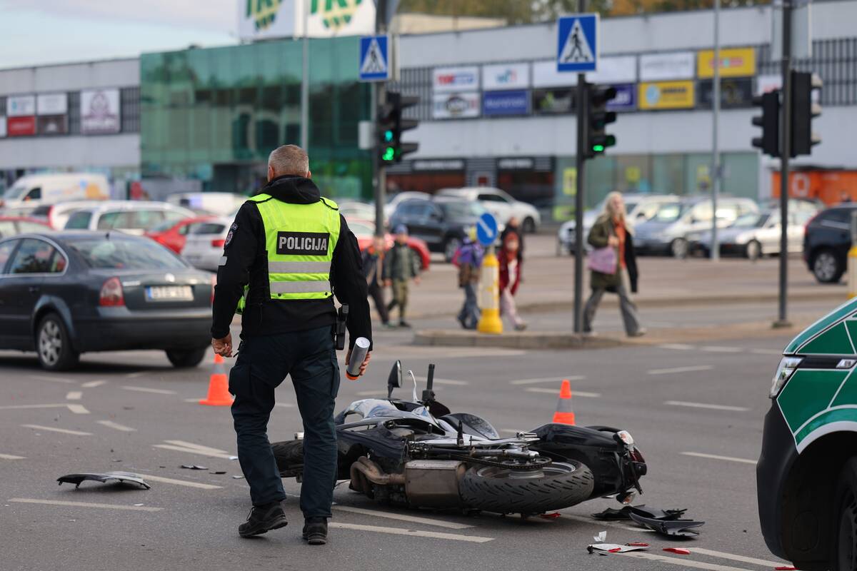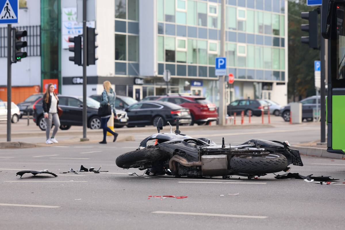 Sankryžoje susidūrė „Audi“ automobilis ir motociklas. Kaip teigė policijos atstovas, nukentėjo motociklo vairuotojas, pirminiais duomenimis, jam sužalota koja.