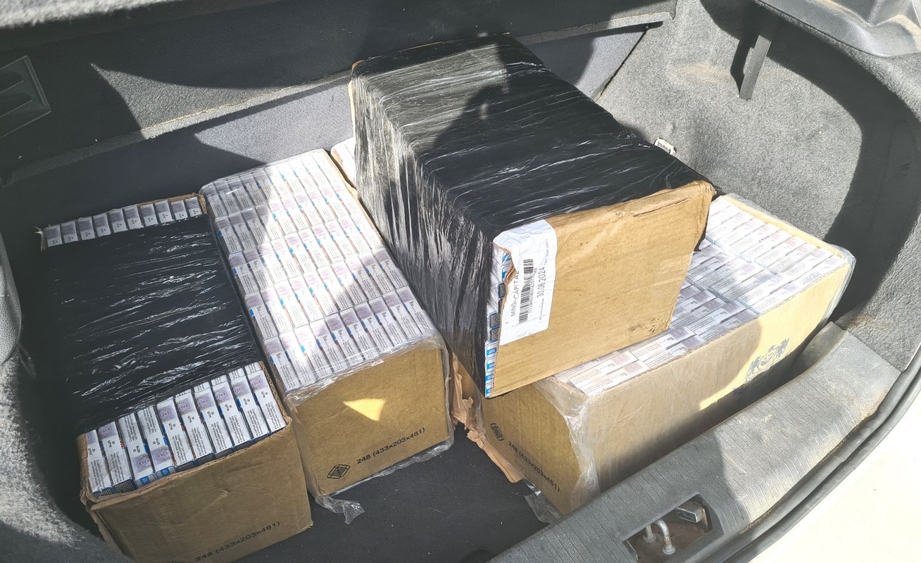 Sulaikytos baltarusiškos cigaretės laikinai saugomos Kauno oro uosto PKP, o automobilis „Opel Astra“ – Vilniaus pasienio rinktinėje.