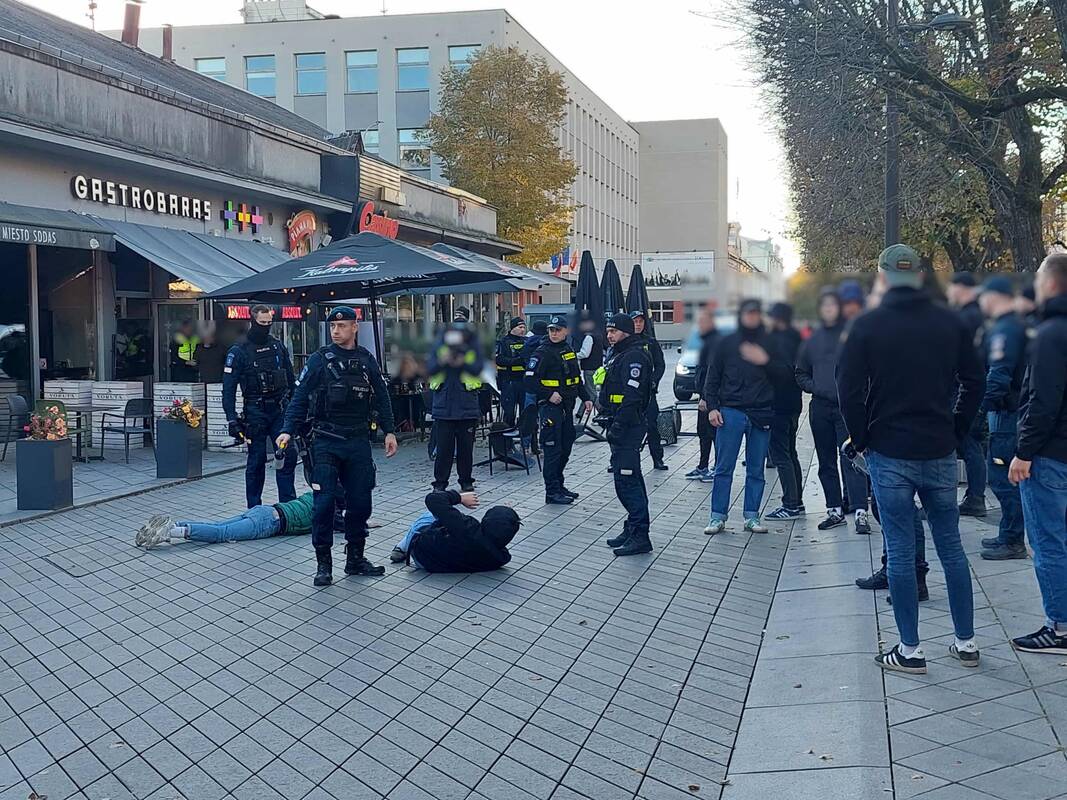 „Su draugėmis sekmadienį prieš 18 val. vaikščiojom Laisvės alėja. Pastebėjom daug Lenkijos futbolo sirgalių. Jie vaikščiojo nemažais būriais, visi juodai apsirengę. Girdėjosi daug žodžių iš k raidės (k***a), buvo gana nejauku. Džiaugėmės, kad patruliuoja policija. Staiga pamatėme, kad policija Laisvės alėjoje, ties „Miesto sodo“ kavine, ant grindinio paguldė pora jaunų lenkų sirgalių. Jie ramiai gulėjo, galima sakyti, nejudėdami. Dėl ko tuos vaikinus ant grindinio paguldė, neįsivaizduoju“, – pasakojo moteris.