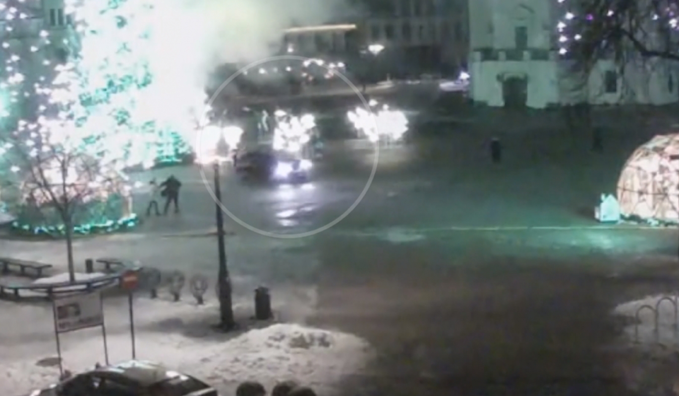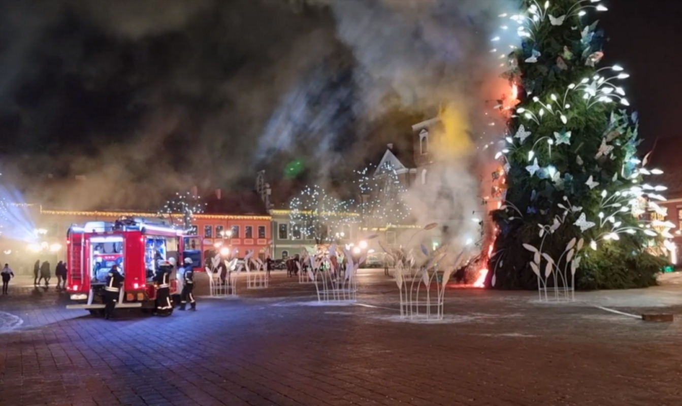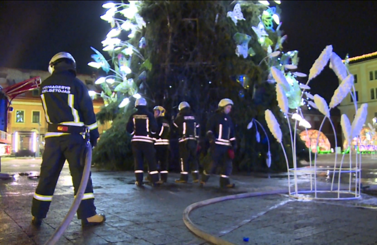 Ne mažiau iškalbingas ir vaizdo įrašas iš pačios Rotušės aikštės. Ir bandžiusiųjų sulaikyti eglės padegėją nusikaltimo vietoje parodymai.