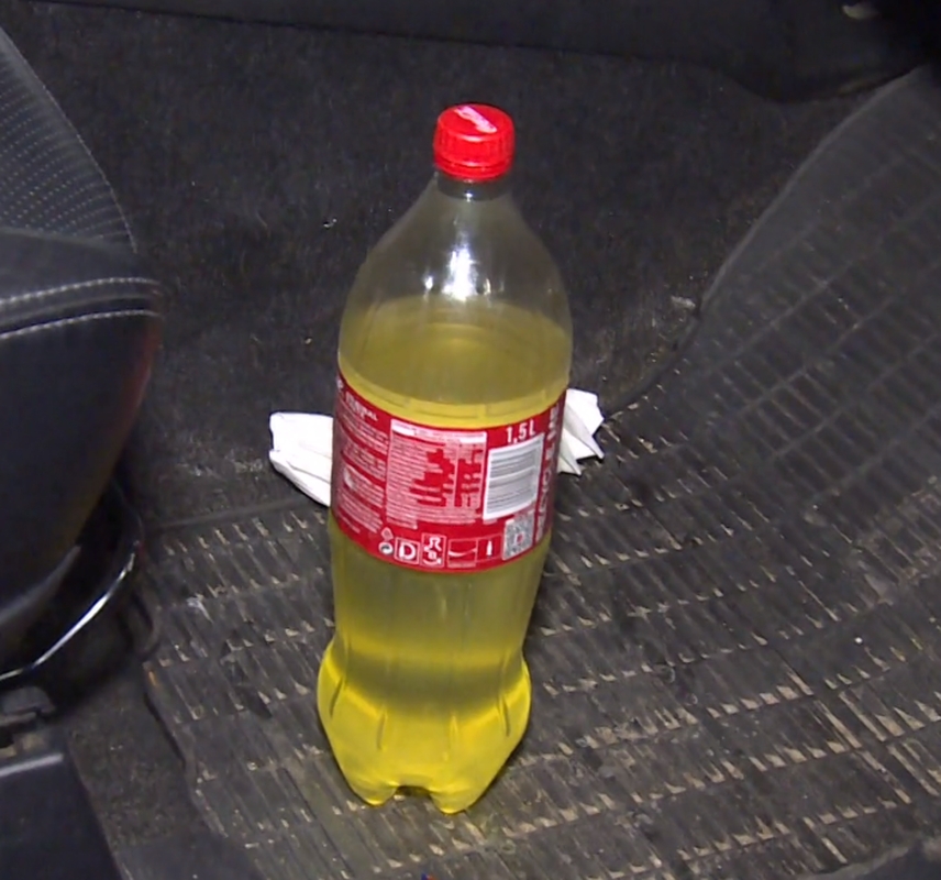 Laidos „Farai“ įraše užfiksuota ir, kad buvo problemų ištraukti eglės padegėją iš automobilio, kurio viduje jautėsi stiprus benzino kvapas. Galiausiai jis buvo paguldytas ant asfalto užlaužtomis rankomis, ant kurių netrukus uždėti antrankiai. Nuo šios vietos vaizdas visiškai pasikeitė. Atsidūręs tarnybiniame policijos automobilyje, sulaikytasis staiga virto romiu avinėliu. Ir vebleno į įsiaudrinusių policininkų užduodamus klausimus, kad nežino, kodėl yra sulaikytas, prie eglės nieko nedarė ir jokių kvaišalų nevartoja. Galiausiai iš viso atsisakė bendrauti su pareigūnais.