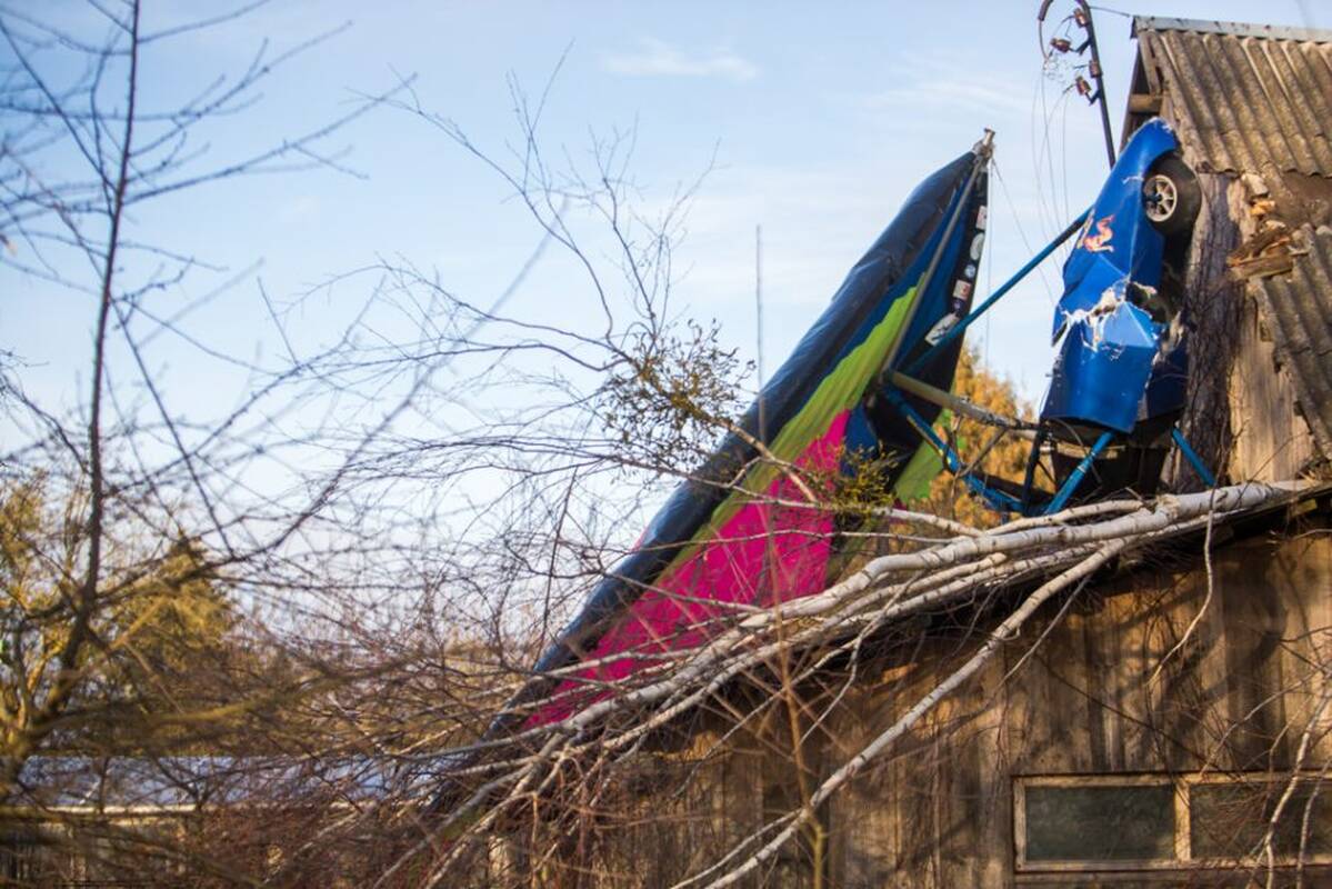 Tuo metu pastate, ant kurio nukrito triratė motoskraidyklė „LY-SAY“, žmonių nebuvo. Šis ūkinės paskirties statinys apgadintas nesmarkiai.