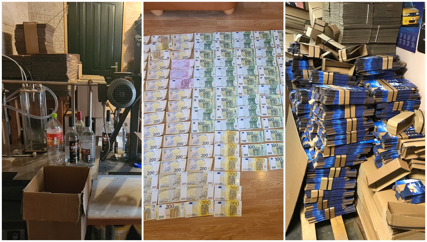 Policija taip pat rado ir paėmė galbūt iš nusikalstamos veikos gautus virš 53 tūkst. eurų grynųjų pinigų, nelegalios gamyklos įrankius, priemones, ruošinius ir kitą tyrimui reikšminą medžiagą.
