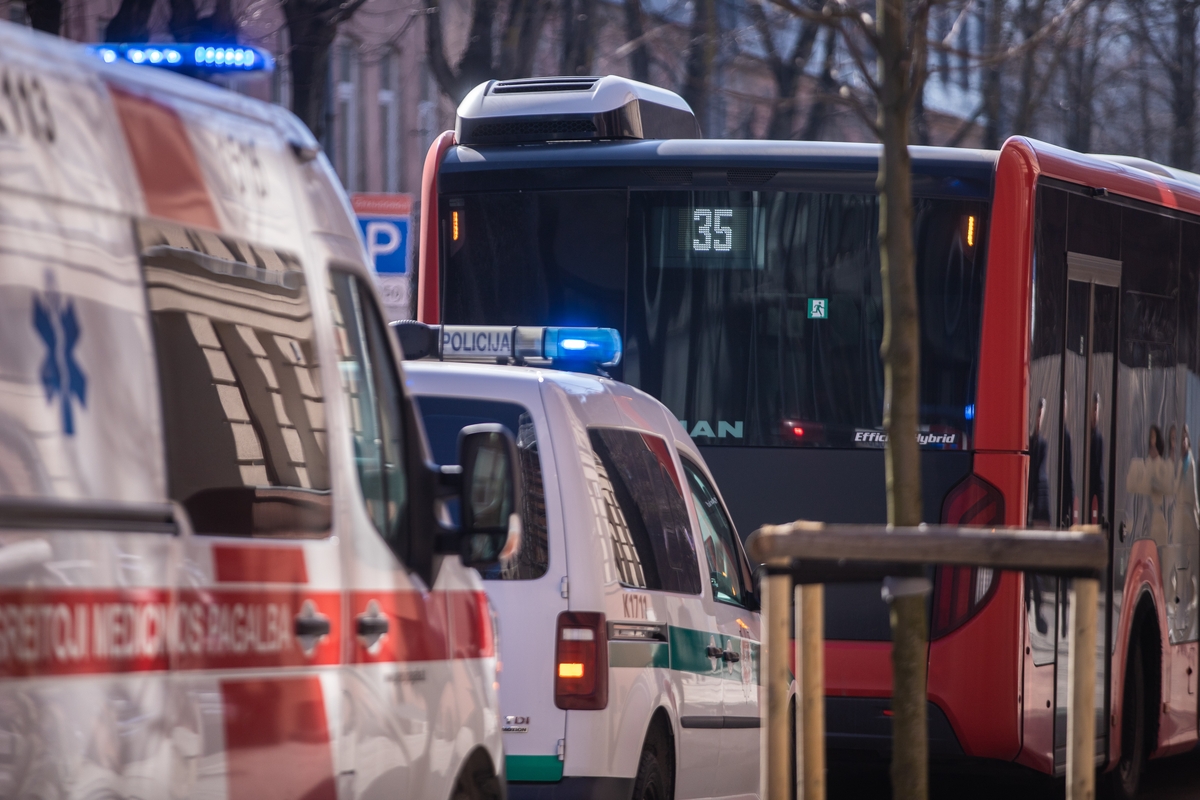 Prie buvusio Kauno kraujo centro pastato viešasis transportas sustojo ir laukė specialiųjų tarnybų pagalbos. Į įvykio vietą atvyko tiek policija, tiek greitosios medicinos pagalbos ekipažas.