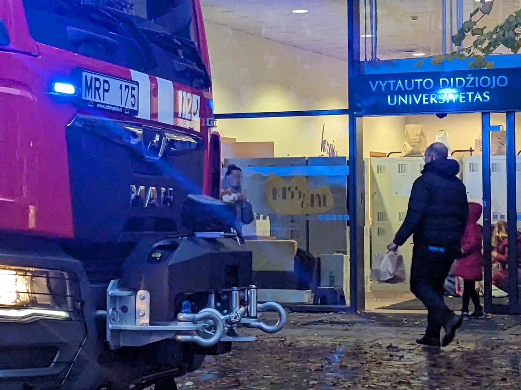 „Evakavome žmones, žvalgome patalpas“, – teigė atstovas. Duomenų apie pastebėtą gaisro ar kitokio pavojaus signalą, kol kalbėjomės, jis neturėjo.
