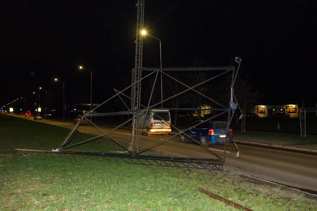 Nukritusio stendo metalinės konstrukcijos sukėlė sunkumų vairuotojams, važiuojantiems Šiaurės prospektu.
