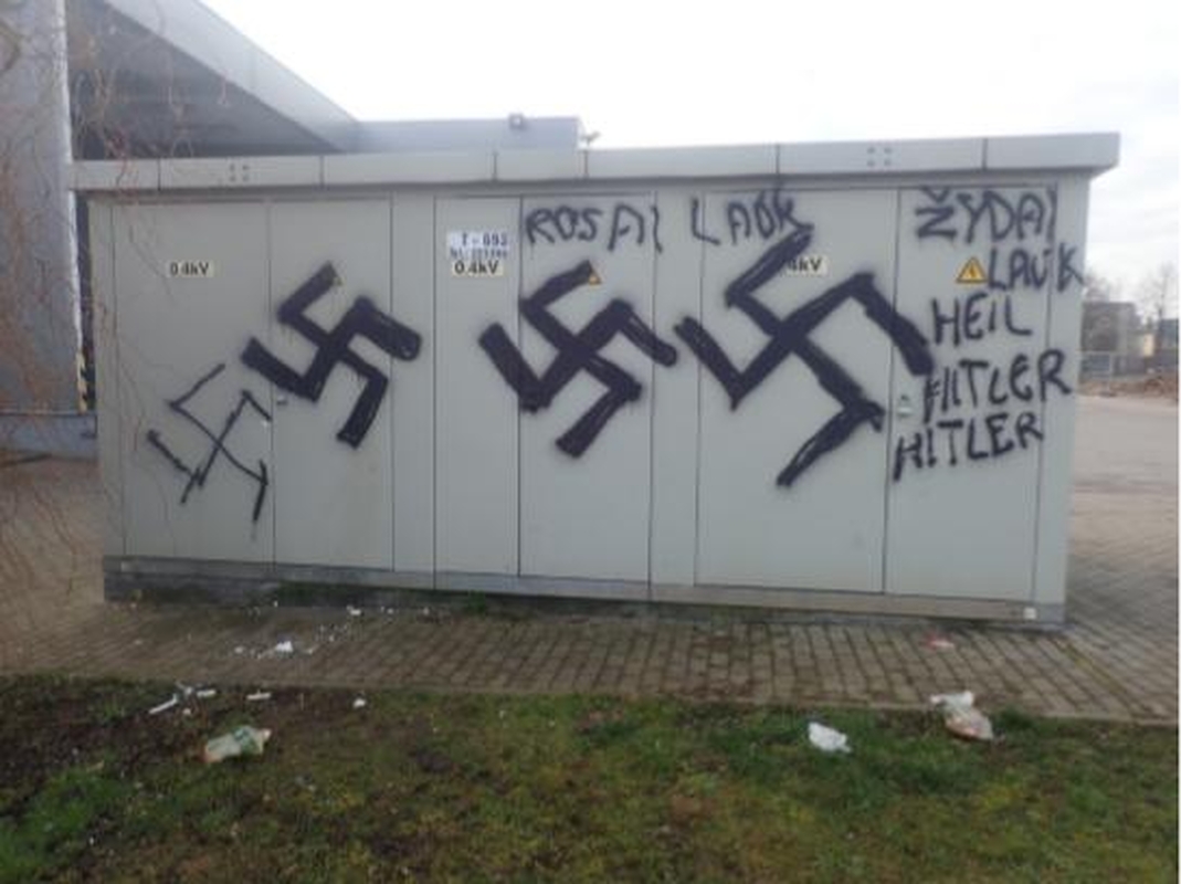 Šiandien ryte sulaikytam politikuojančiam „dailininkui“ inkriminuojamos dvi nusikalstamos veikos: ant elektros skydinės ties Raudondvario plento „Maxima“ kovo 9-sios paryčiais aptikta svastika ir nacistiniai užrašai „Žydai lauk", „Rusai lauk“ bei „Heil Hitler“ ir netoliese esančioje parduotuvėje „Moki-veži“ kovo 10-ąją, apie 10.30 val., ant grindų pastebėta svastika, o dar viena – išpurkšta ant jos lauko fasado.