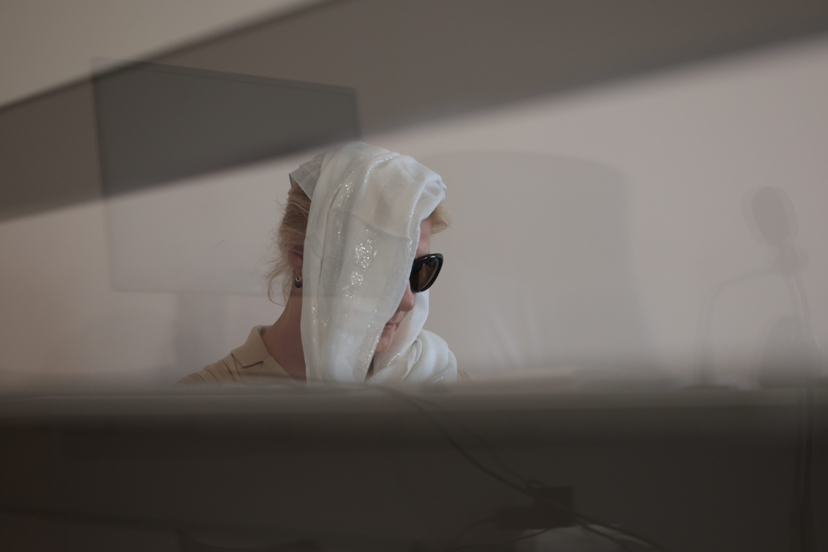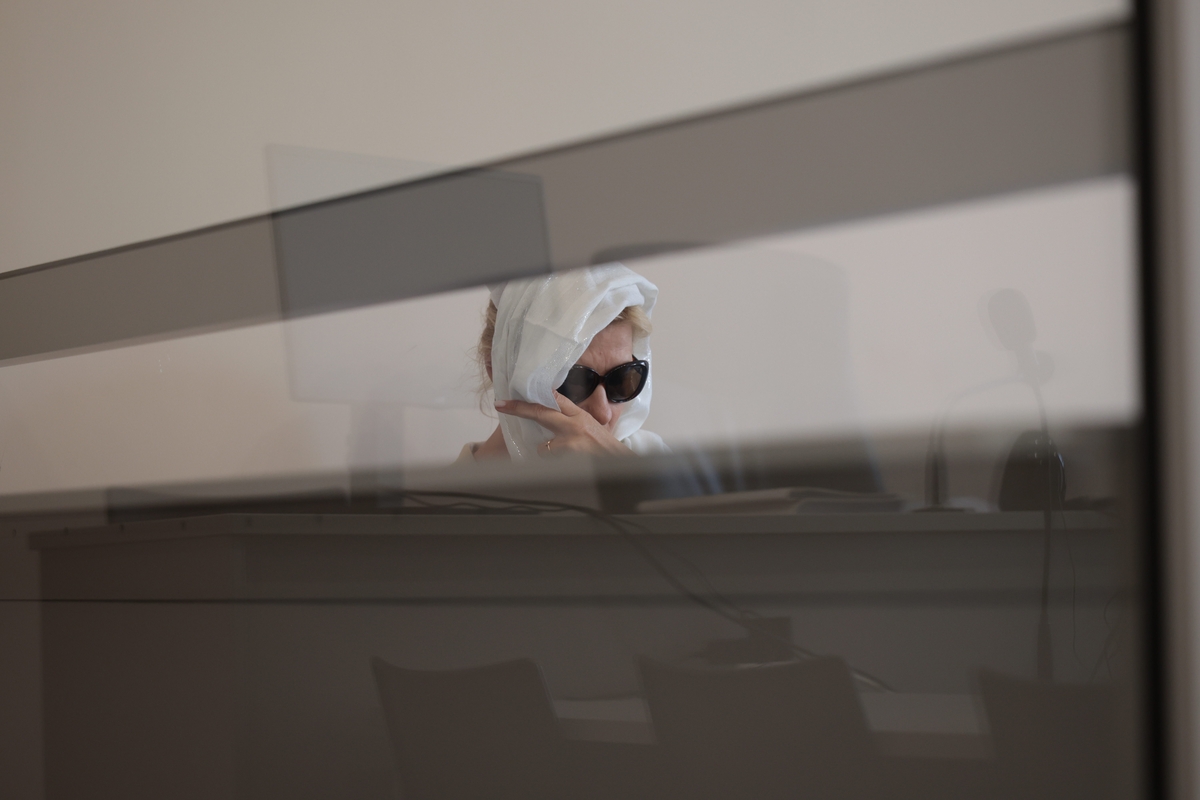 Antradienį suplanuotame teismo posėdyje I. Bublienė pasirodė su vyresnės moters palyda. Netrukus paaiškėjo, kad ši atliko ir žvalgės vaidmenį – pasirodžiusi pirmoji teismo salėje ir išvydusi ten portalo kauno.diena.lt fotografą, perspėjo apie tai koridoriuje jos laukusią I. Bublienę. O ši, savo ruožtu, skubiai ėmė įgyvendinti, panašu, kad iš anksto parengtą planą bandyti slėptis po akiniais nuo saulės ir skara.