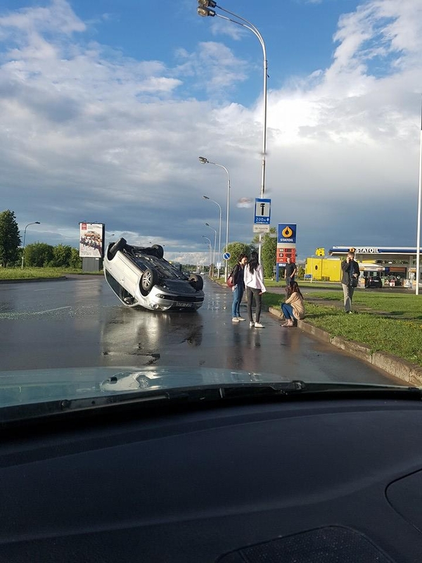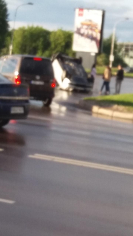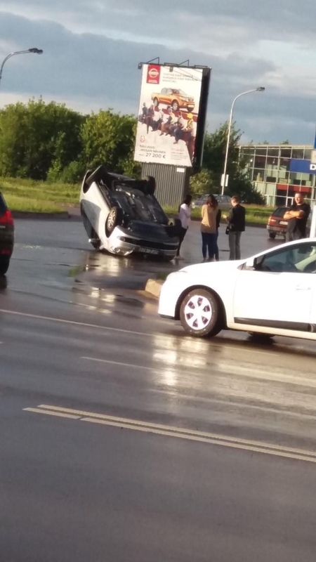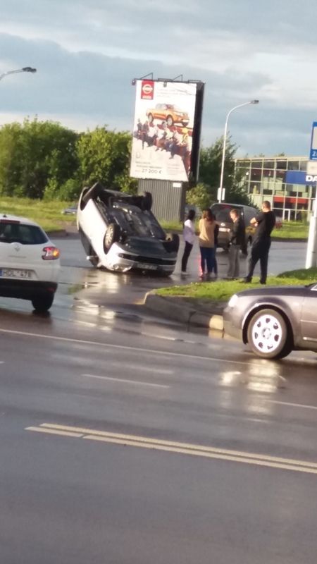 Nelaimingas atsitikimas užfiksuotas apie 20 val. Automobilis stipriai apdaužytas, tačiau žmonės nenukentėjo.