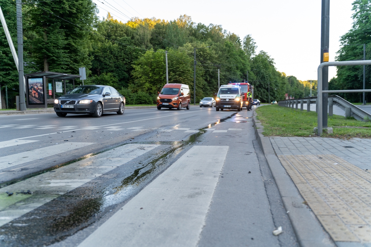 Informuota, kad Tunelio gatvėje, prie Dainų slėnio, važiuojant kryptimi nuo K. Baršausko gatvės link geležinkelio stoties, susidūrė du automobiliai.