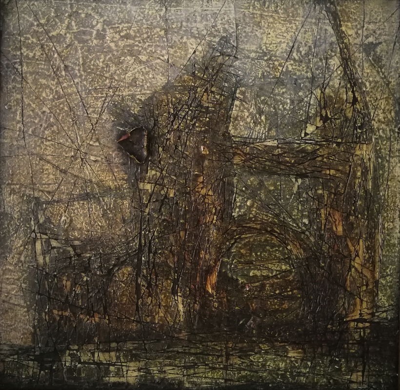 Tęsiu pasivaikščiojimą po galeriją, atidžiau įsižiūrėdama į kiekvieną kūrinį. Stabteliu ties koliažu „Turto deklaracija“. Paveiksle iškalbingomis vaizdinėmis metaforomis pavirsta raktai ir varžteliai, kurių ne viena dešimtis įkomponuota paveikslo paviršiuje. Ar reikia paaiškinimo kodėl? Nebūtinai. Turtai visada buvo rakinami didžiausiomis spynomis, o raktas nuo slaptojo stalčiuko nešiojamas kažkur drabužių klostėse. O gal čia visai ne apie tai, gal sakoma, kad viskas, kas mūsų užgyventa – tik pabiros, tik varžtų ir raktų saujelė. Po paveikslu paaiškinimo nėra, žiūrovui paliekama laisvė interpretuoti, kurti savo naratyvą.