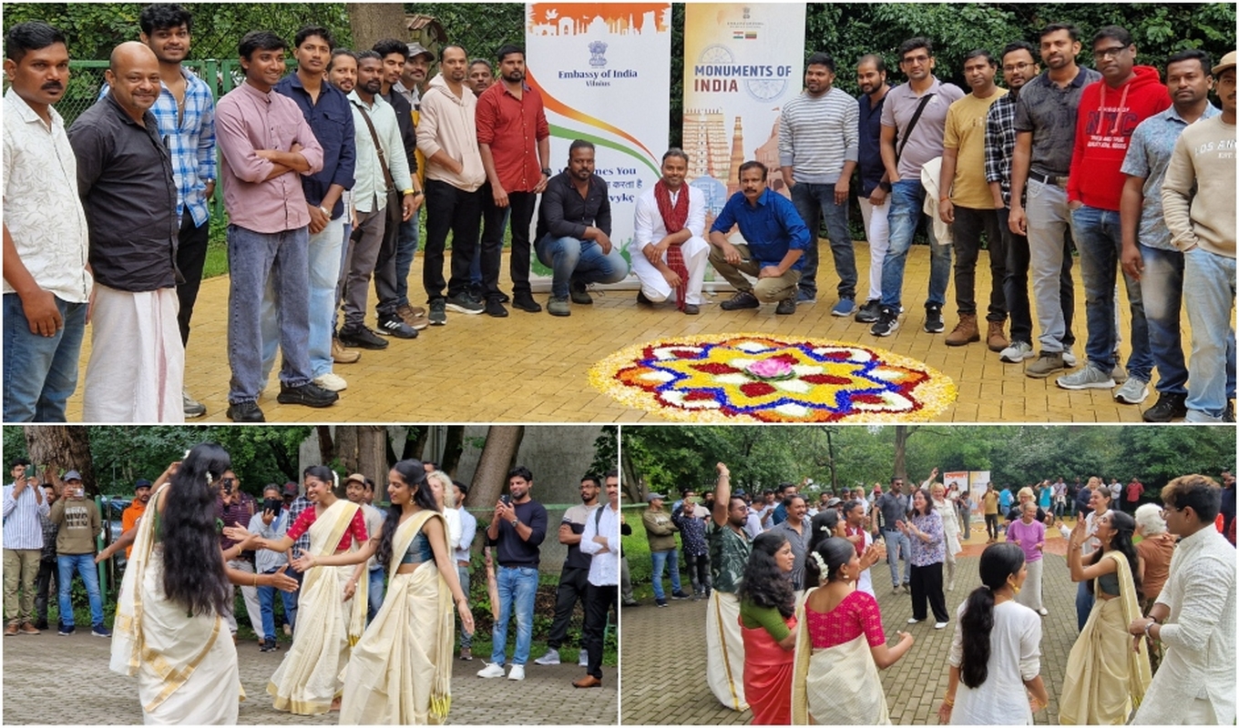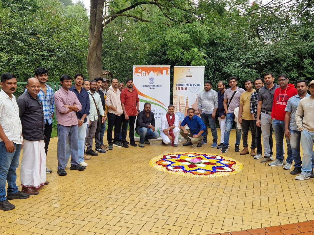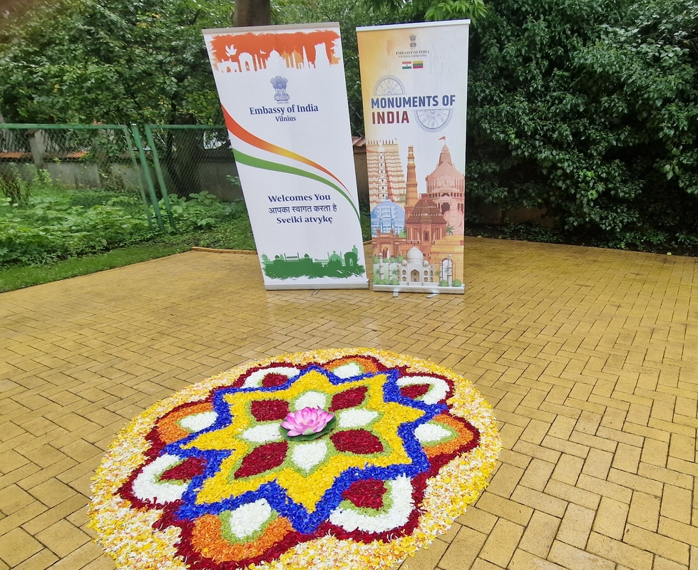 Daugelis stojo prie Indijos ambasados sienelės, stengdamiesi užfiksuoti ne tik užrašus joje, bet ir iš gyvų gėlių žiedlapių sukurtą mandalą – būtiną vienybės ir derliaus šventės Onam atributą.