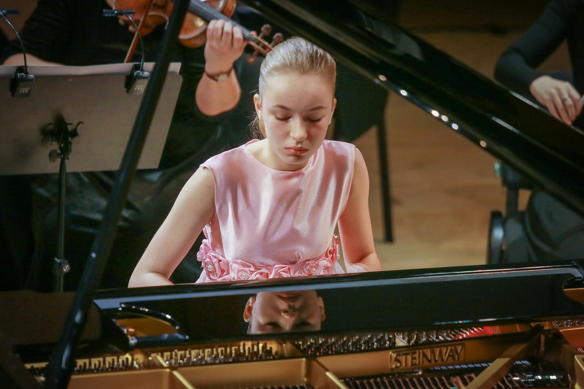 Šilutiškė dvylikametė virtuozė Meda Siliūtė (mok. Liudmila Sandra Tunaitienė) dovanojo žavų ir temperamentingą F.Mendelssohno Koncertą Nr. 1., nelengvai pasiduodantį net profesionalių atlikėjų rankoms.