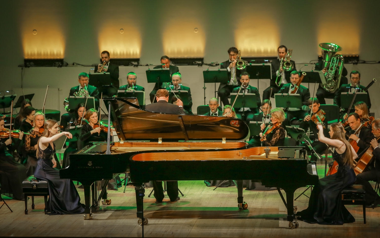 Koncerte grojo ir specialiai šiai progai iš Freiburgo (Vokietija), kur studijuoja aukštojoje muzikos mokykloje, grįžusios J.Kačinsko muzikos mokyklos absoventės charizmatiškosios seserys dvynės Augustė ir Ieva Petkūnaitės. Dažnai koncertuojančios fortepijoniniu duetu, jos šventinį vakarą publikai taip pat skambino kartu ir atliko audringomis ovacijomis palydėtą koncertą dviem fortepijonams ir orkestrui. Pirmą kartą Lietuvoje skambėjęs šiuolaikinio prancūzų kompozitoriaus Francis Poulenc kūrinys tapo ypatinga dedikacija Kovo 11 – osios trisdešimtmečio proga, klausytojus užbūrusi jaunatvišku šėlsmu ir, anot koncerto vedėjo V. Gerulaičio, apsvaiginusi „paryžietišku žavesiu ir melancholija”.