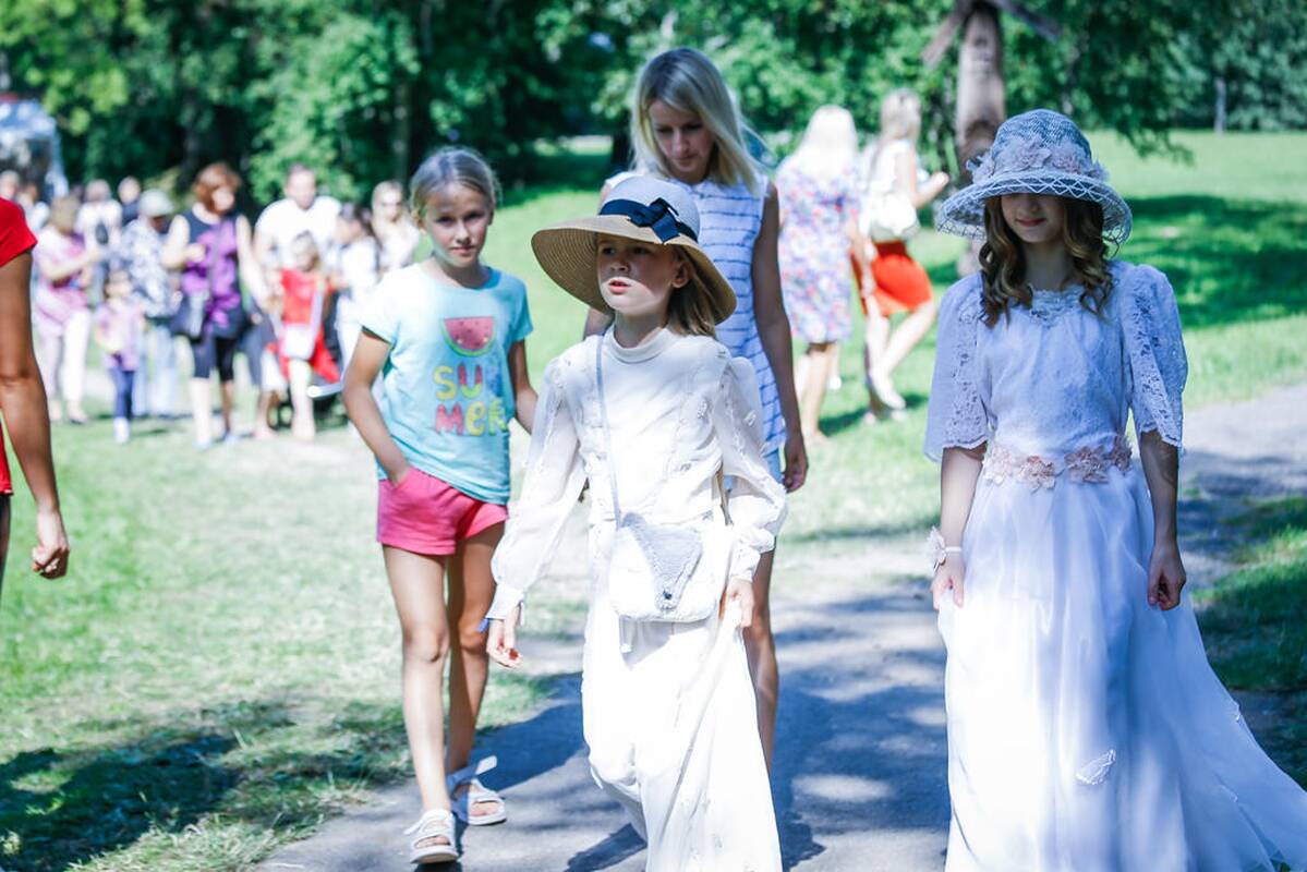 Suknelėmis ir skrybėlaitėmis pasidabinusios damos nukėlė svečius į kitą istorinę epochą.