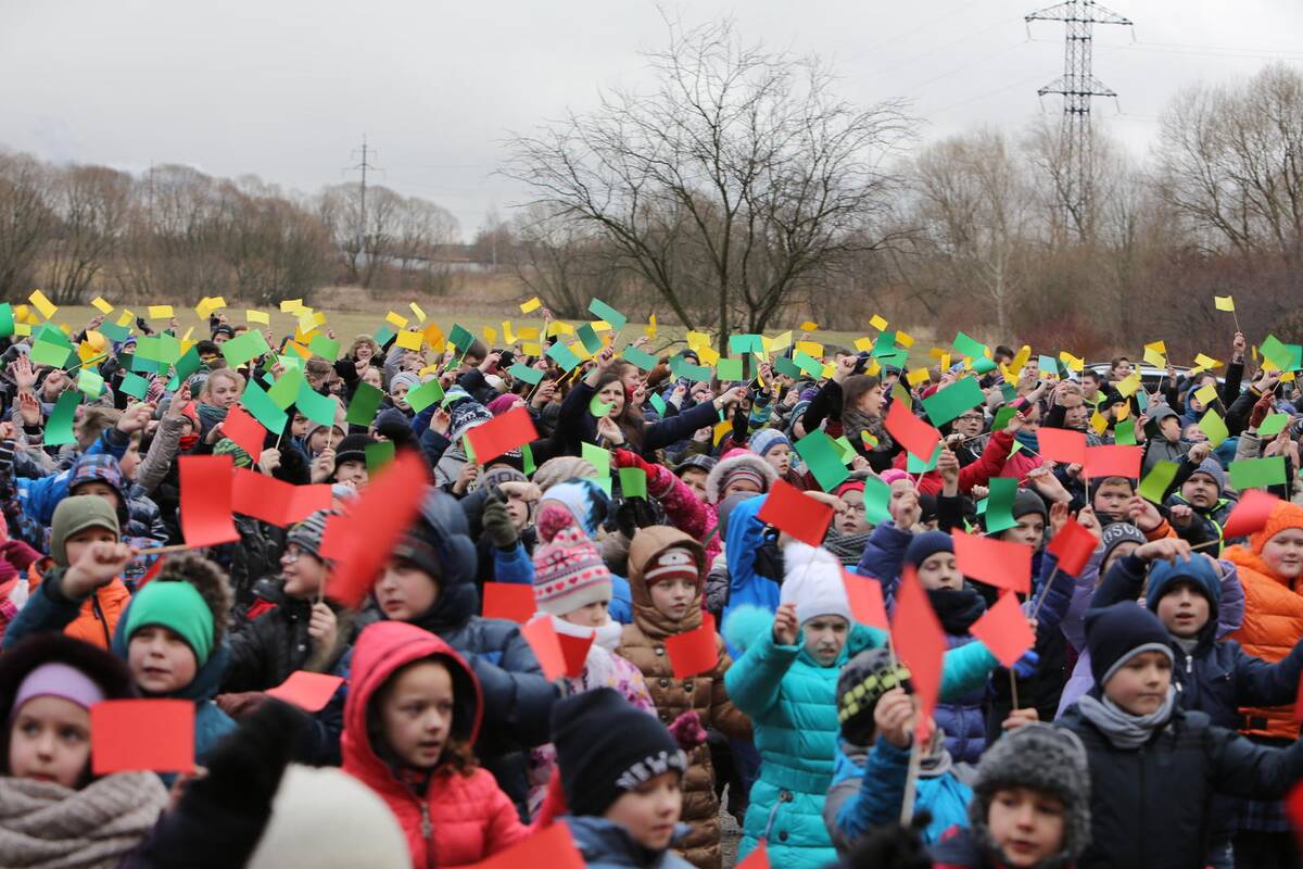 „Verdenės“ progimnazijos moksleiviai penktadienį sudrebino aplinkinių namų Kretingos gatvėje langus. Mokyklos kieme driokstelėjus muzikai, 800 mokinių iškėlė rankas, kuriose mirgėjo trijų spalvų vėliavėlės.