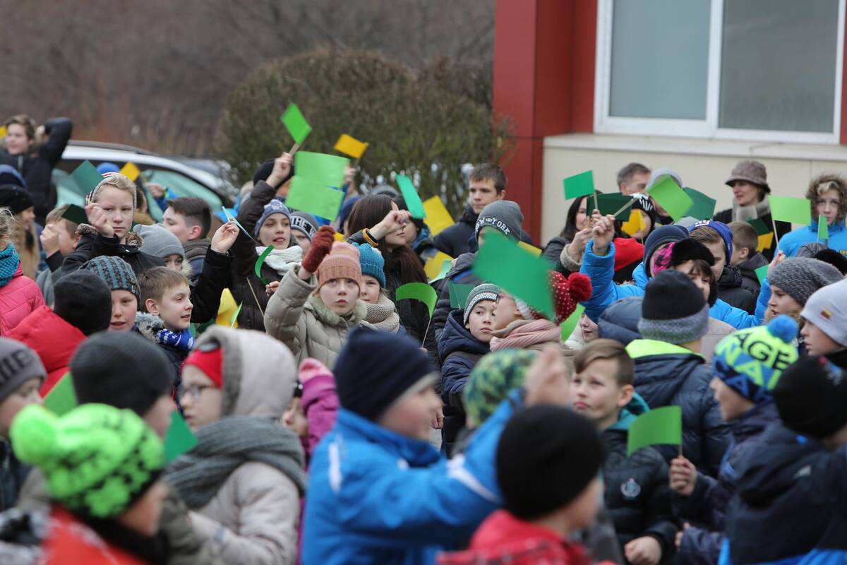 Iš viso mokykloje mokosi 899 mokiniai. Tačiau šiuo metu daug vaikų serga. Penktadienio renginyje dalyvavo vaikai nuo pirmos iki aštuntos klasės.
