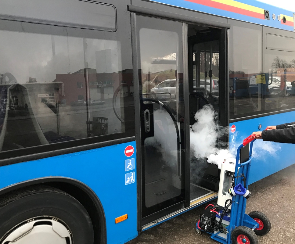 „Skirtingai nuo pavasarinio karantino metu išpopuliarėjusių purškiamų dezinfekcinių preparatų, kuriais efektyviai neutralizuojame bakterijas ant paviršių, dabar įsigijome garų generatorių, kuris iškart dezinfekuoja ir paviršius, ir patalpos orą“, – aiškino Imantas Paliakas, bendrovės „Klaipėdos autobusų parkas“ Eksploatacijos departamento direktorius.