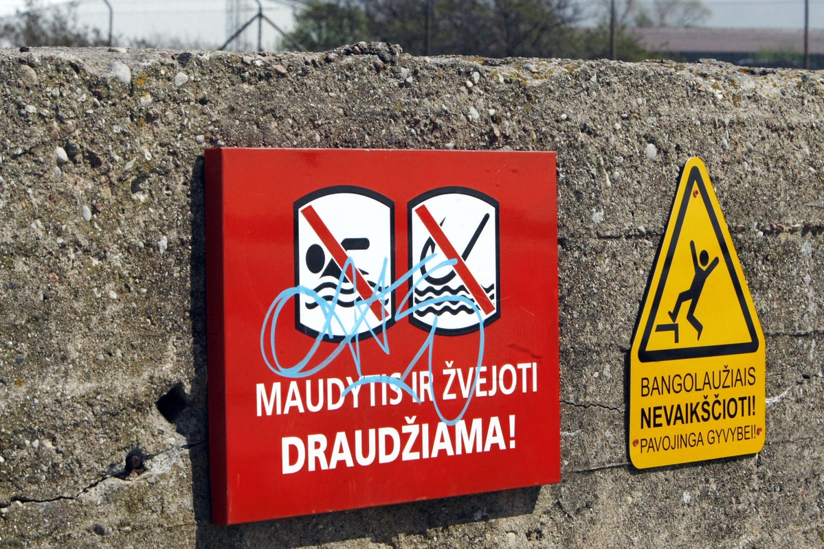 Prie molo kabantys ženklai įspėja, kad žvejyba yra draudžiama. Tačiau akivaizdu, jog dauguma žūklės mėgėjų to nepaiso.